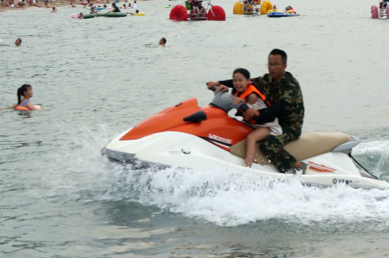 這里有摩托艇,100元一位,不便宜。是女兒最愛的項(xiàng)目,刺激的項(xiàng)目。