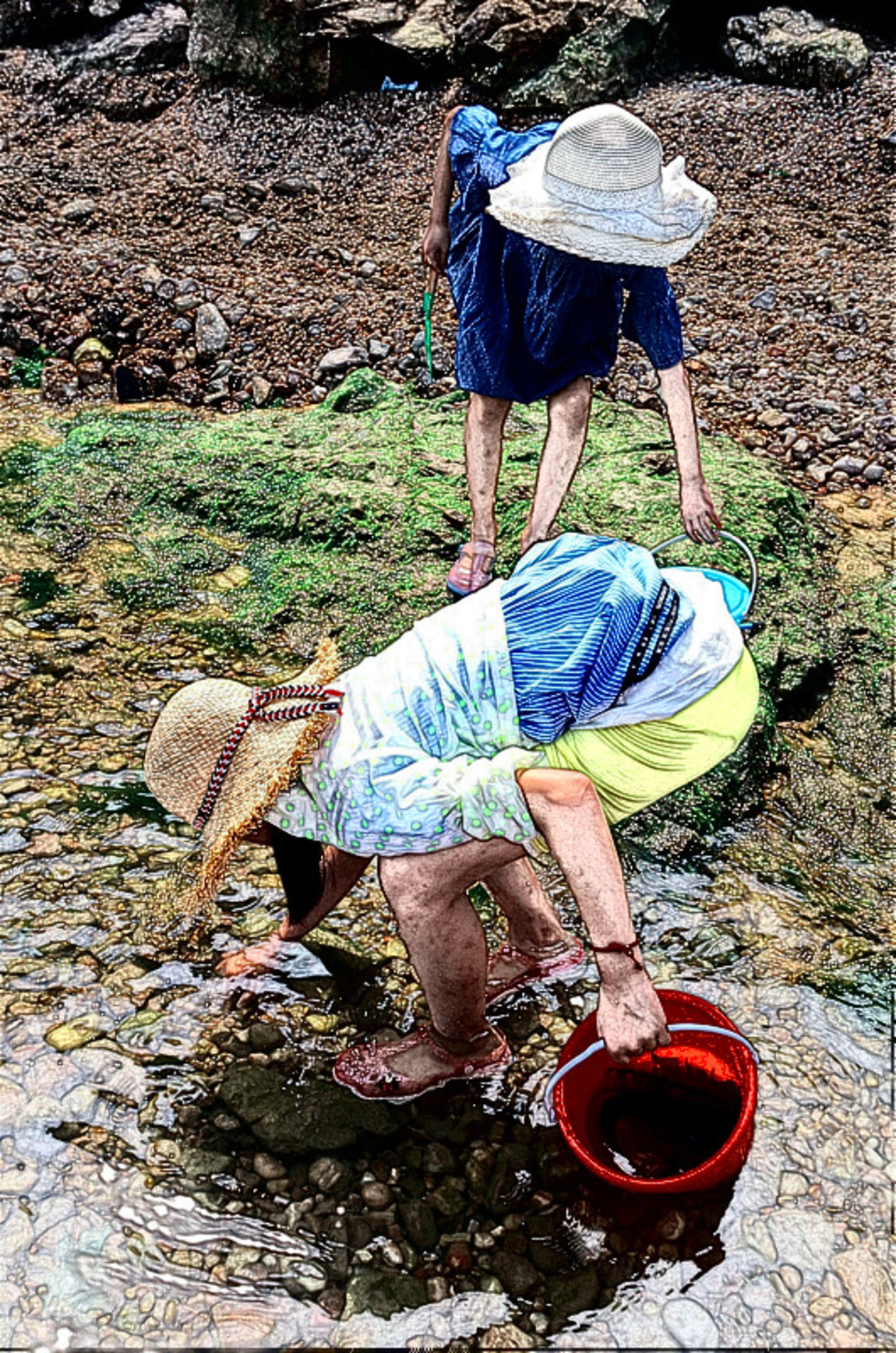 趕海最興奮的就是孩子們,這里海星很多,剛剛退下去的潮水,礁石上留下一堆海星。
