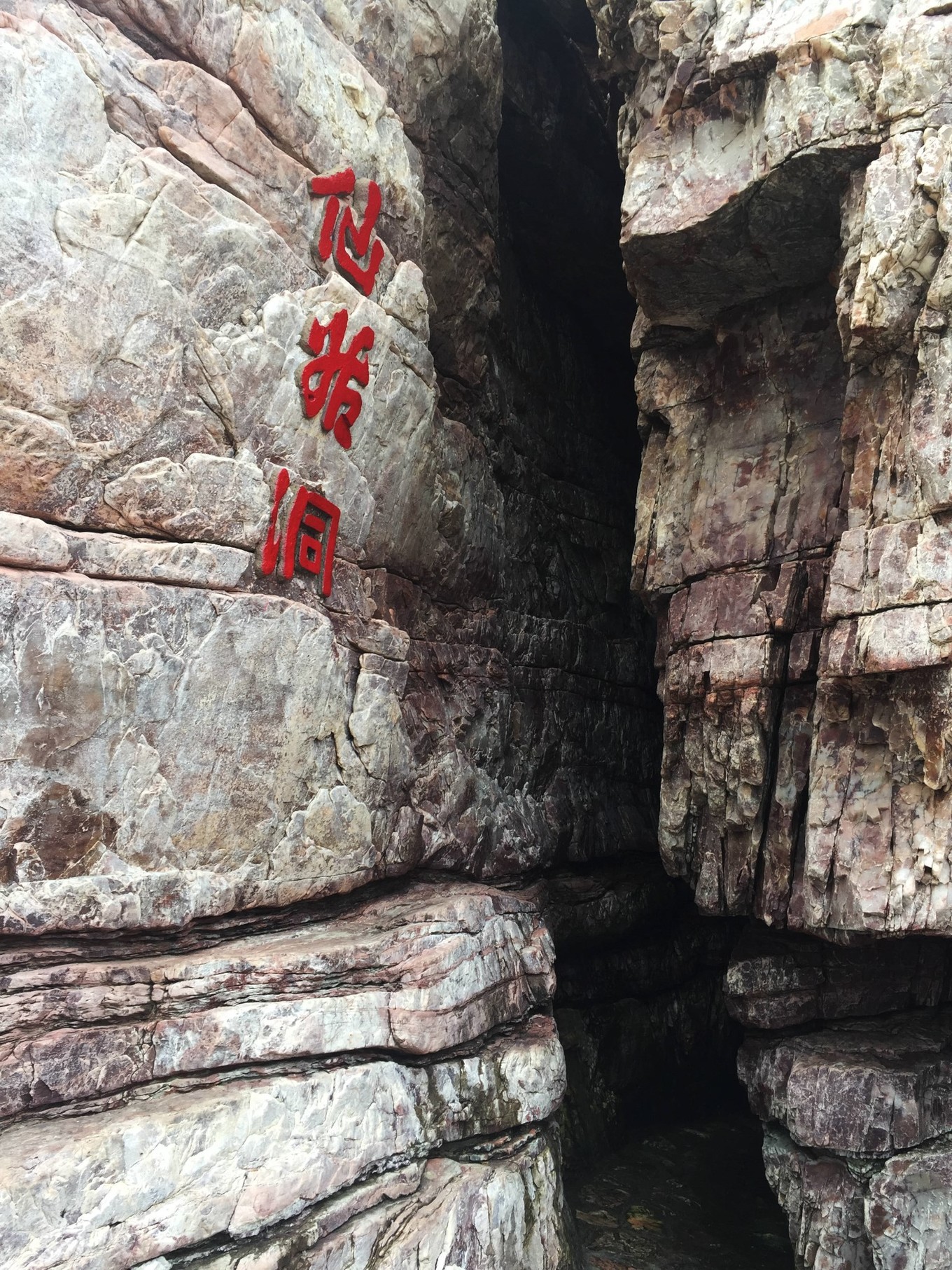 這是整個行程中,我覺得最可詭異的景點(diǎn)!一條黑漆漆、潮乎乎的石縫最深處,有一座高大的、披著紅色披風(fēng)的仙姑像....我在最外面朝里看了兩眼,看得我汗毛直豎,感覺瘆得慌!很想知道,這個景點(diǎn)設(shè)置的意義何在?