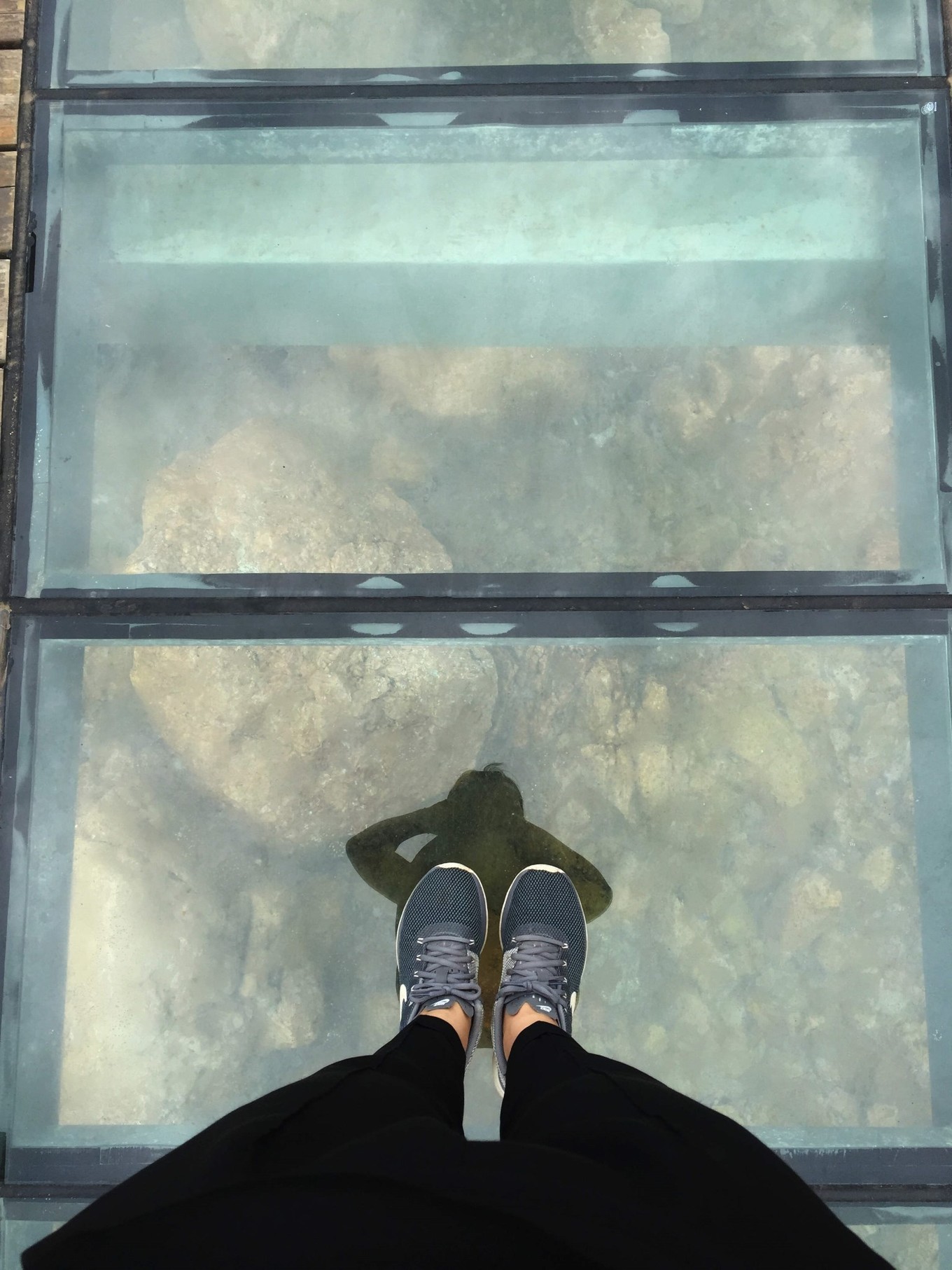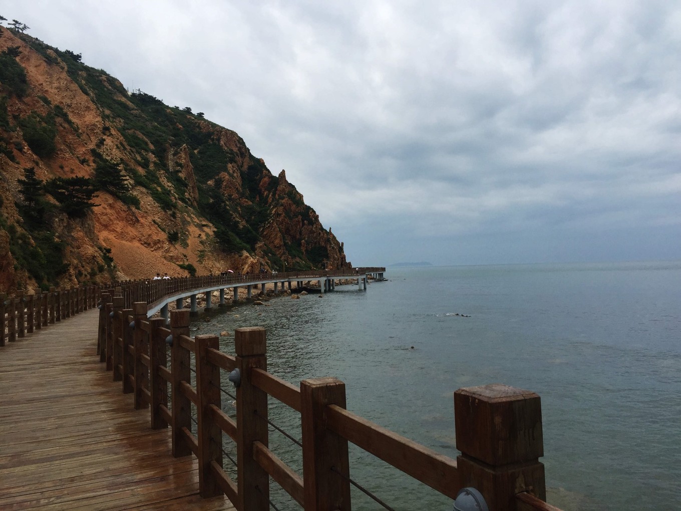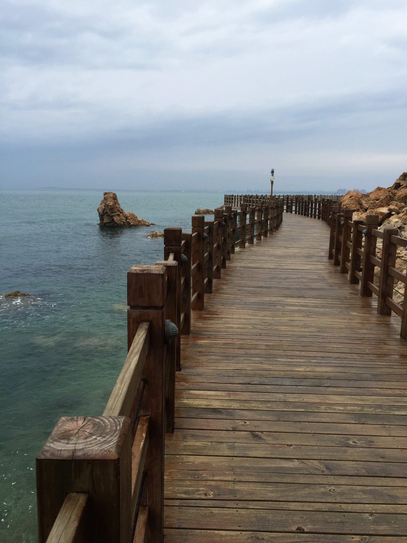 我們是從林海景區(qū)進(jìn)入的,要先坐免費(fèi)的觀光車,送到統(tǒng)一的休息站,然后再步行進(jìn)行景區(qū)。在景區(qū)玩好后,需要再回到這個休息站,坐觀光車送到山下。林海景區(qū)玩的地方很多:黃渤海分界線、木棧橋、玻璃棧道(雖然只有幾段)、長山尾……