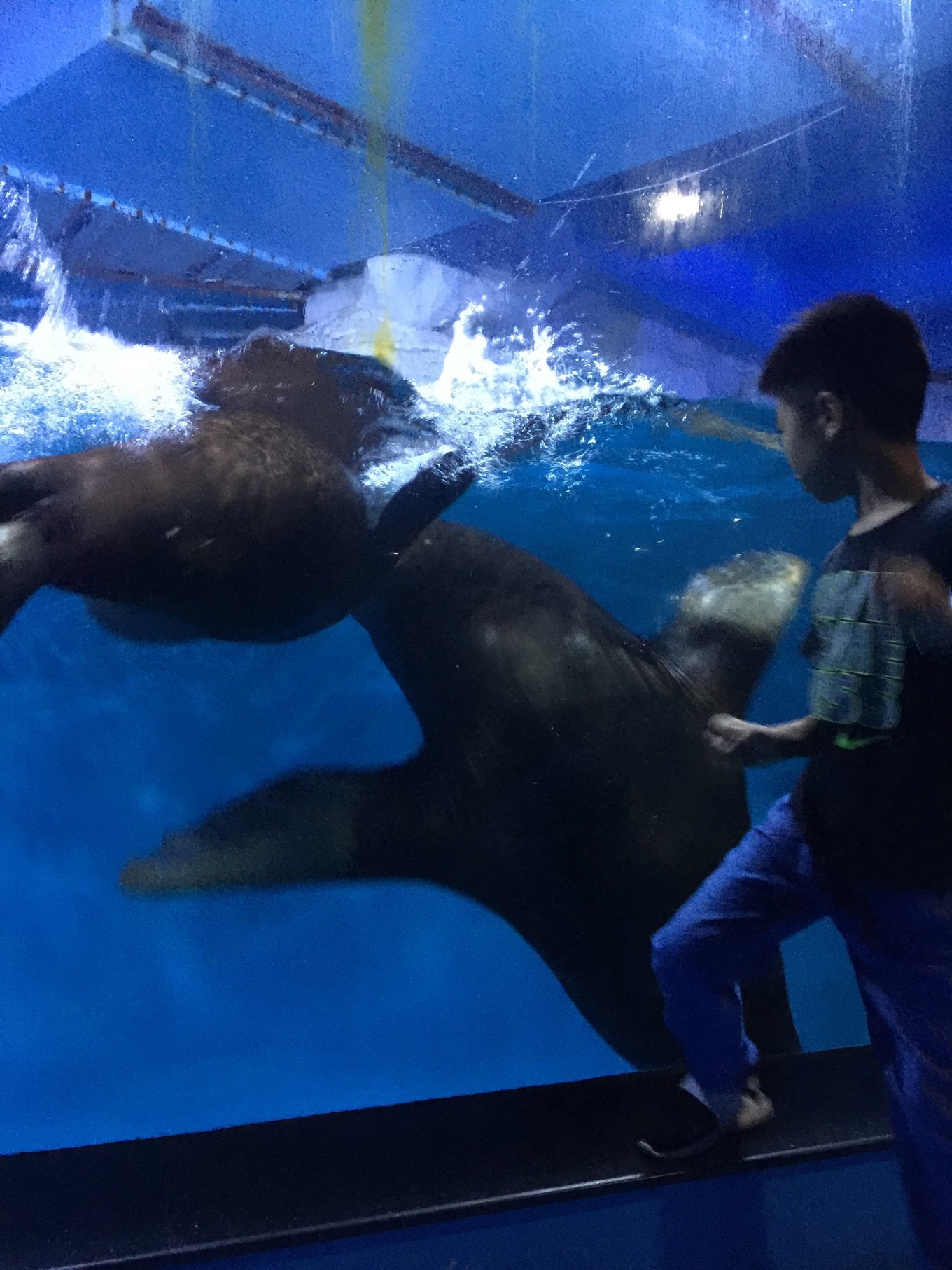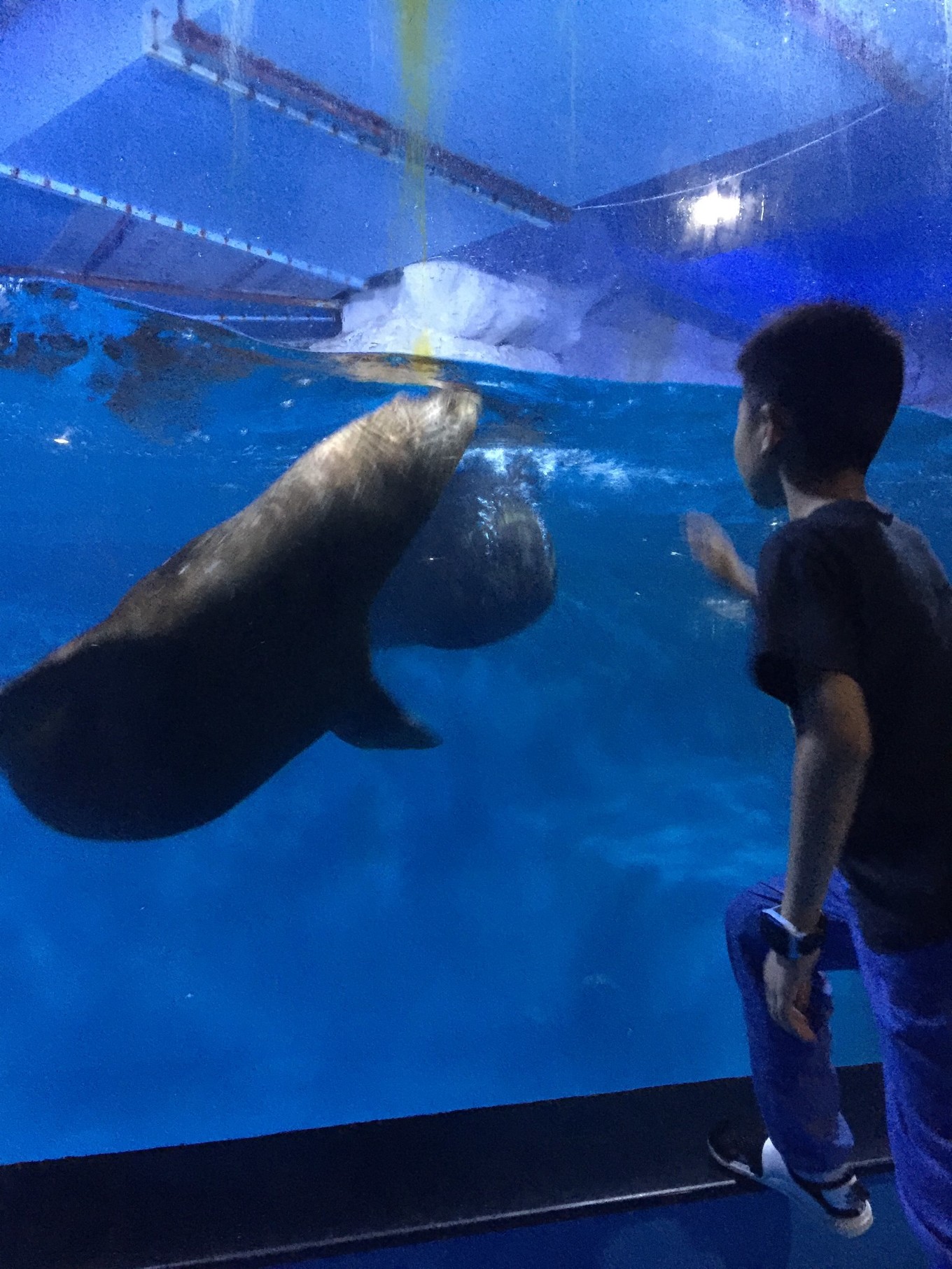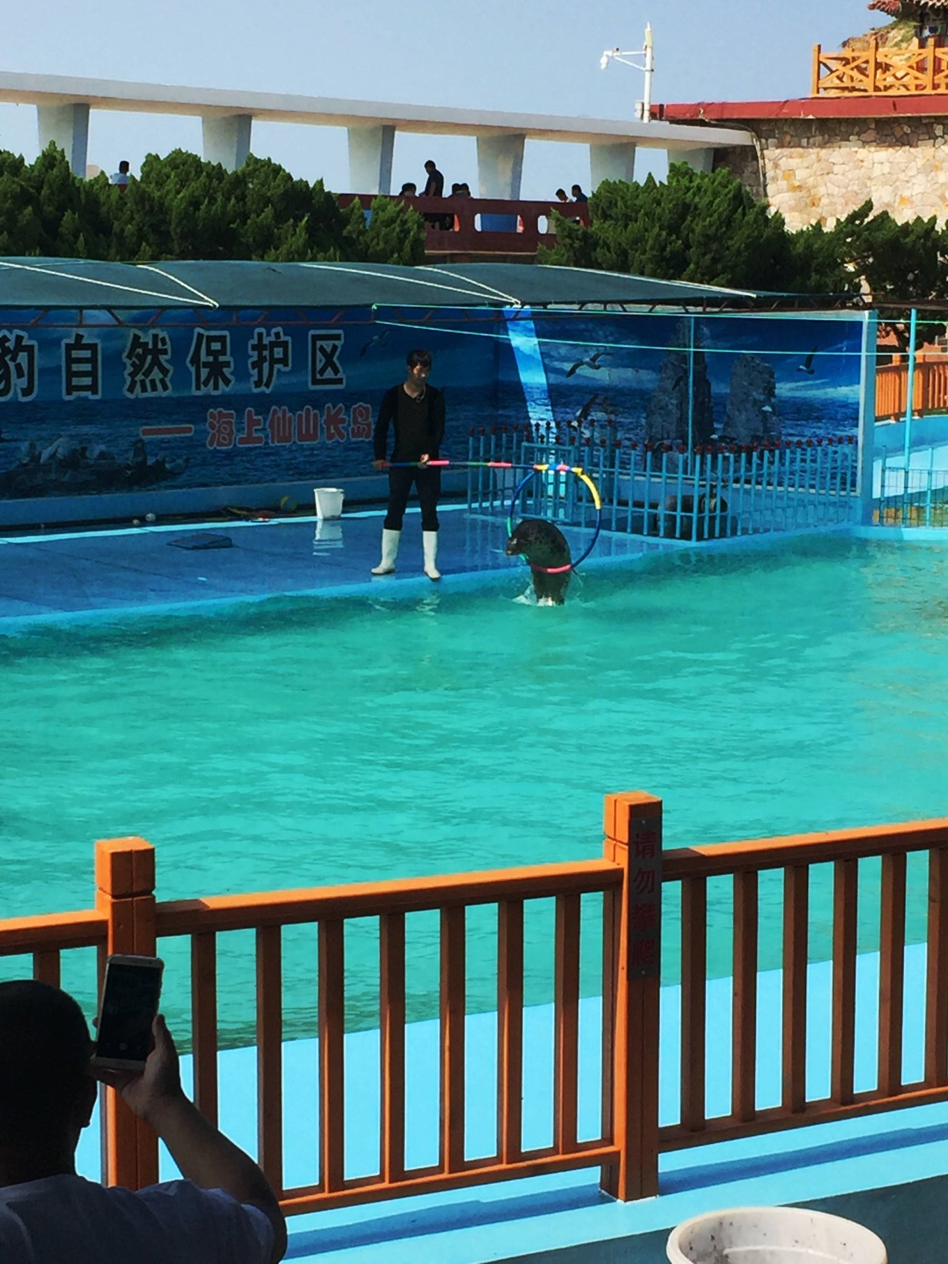 正好趕上3點(diǎn)的海豹表演。下午共有兩場,4點(diǎn)還有一場。