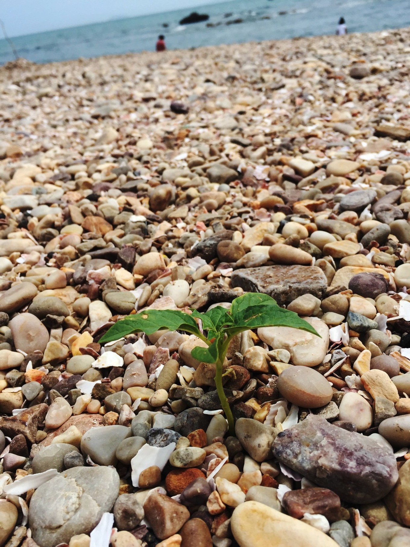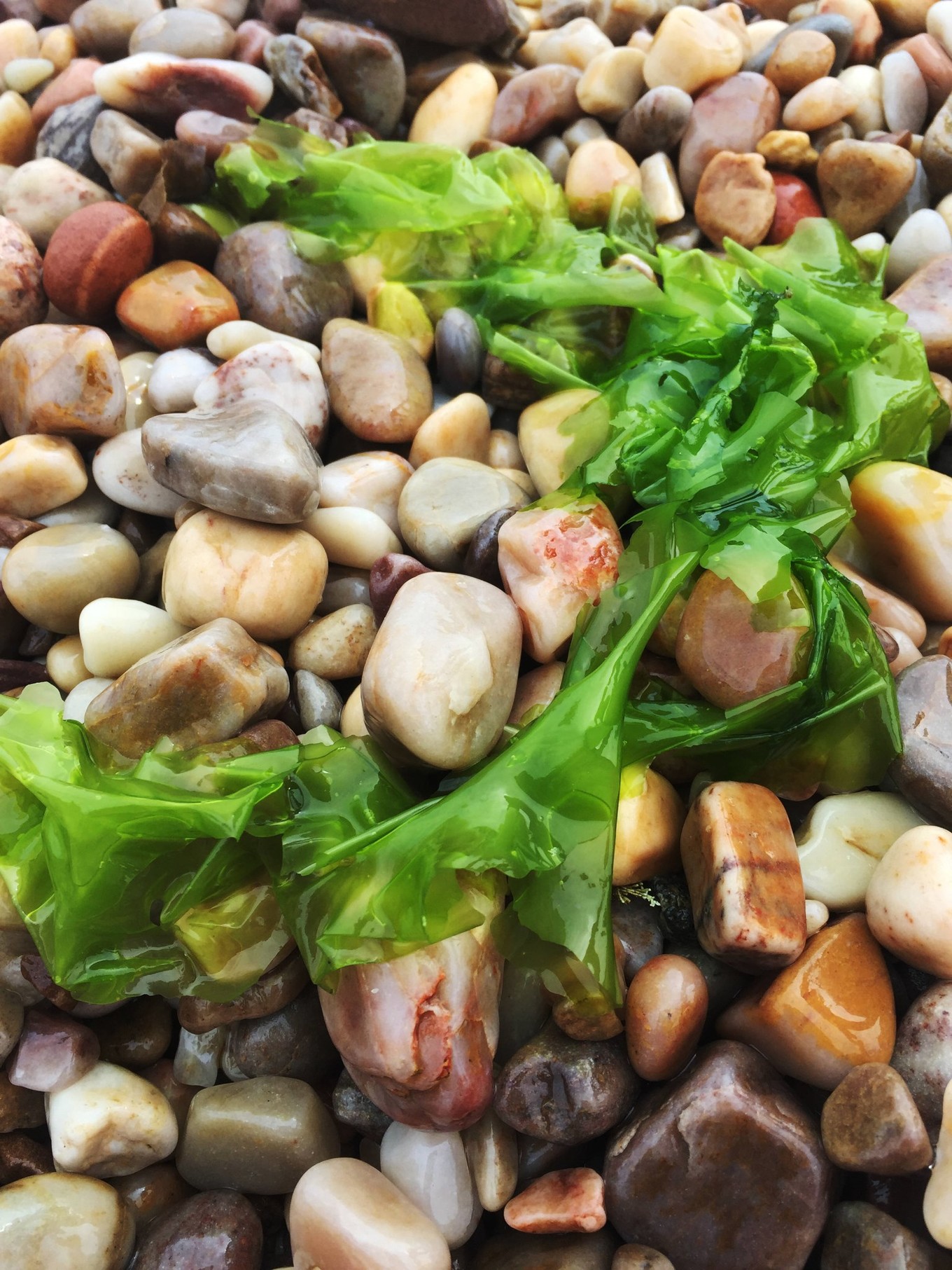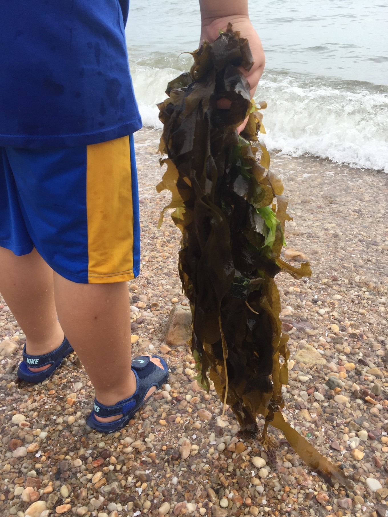 岸邊好多人在撿這種海草,像海帶一樣。