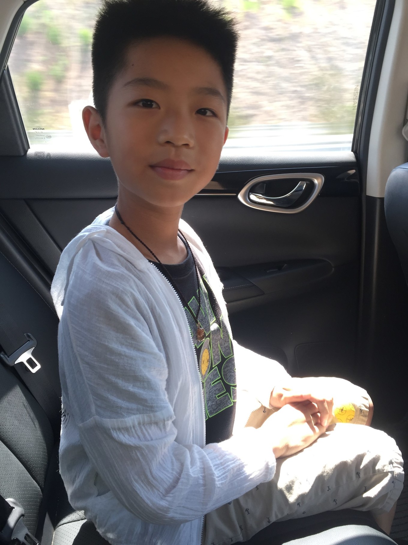 吃完午飯在房間休息一會兒,準(zhǔn)備好游泳的裝備出發(fā)。出門走兩分鐘有公交站臺,坐一站路就可以到月牙灣。但是剛出來就看見公交車開走了,下一班要再等半小時。正巧有個順風(fēng)車10塊錢可以送我們?nèi)ピ卵罏?,立馬決定上車走人!