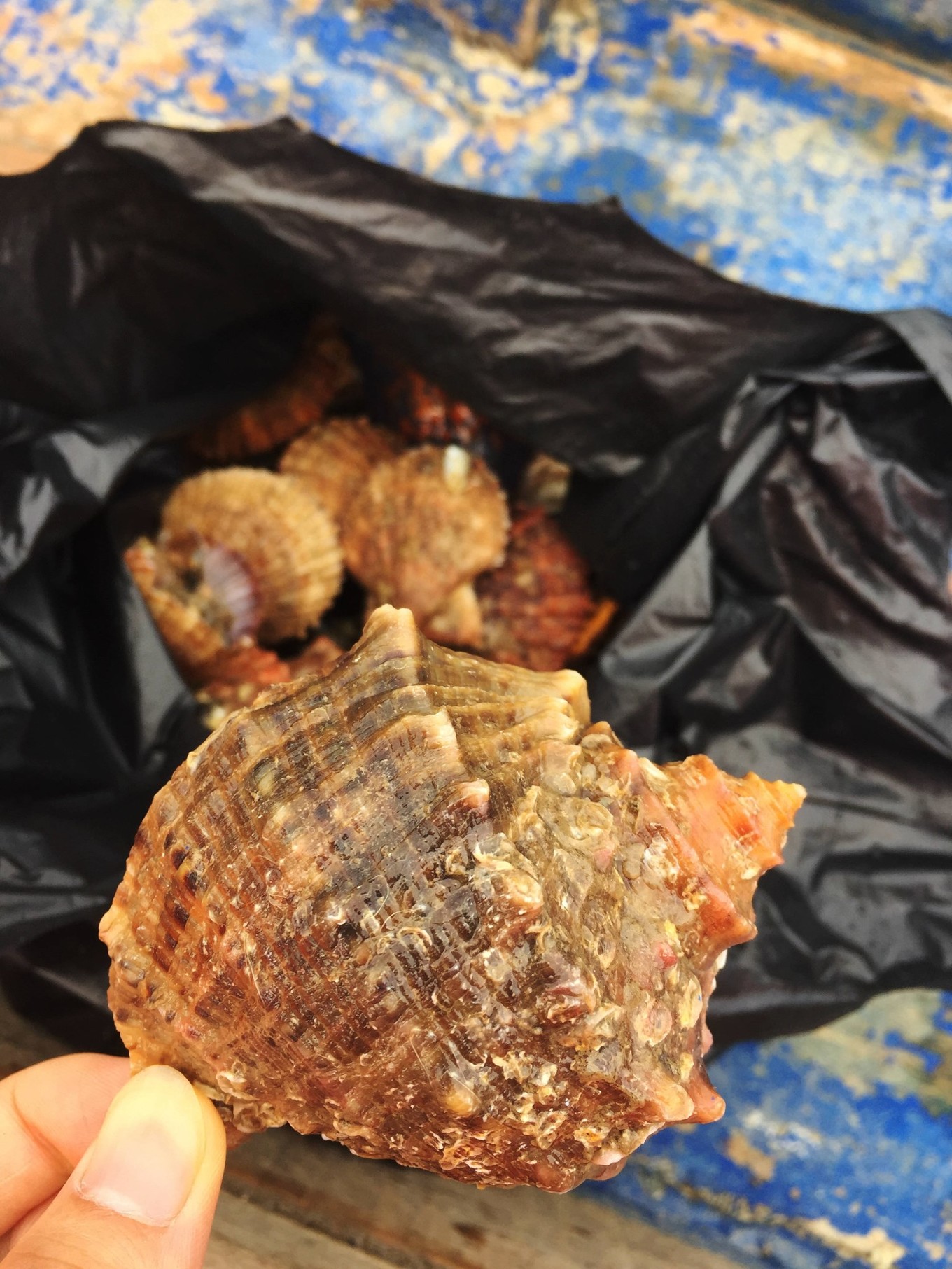 拔蟹籠。交了幾個人的錢,就會給你幾籠海鮮,工作人員會拿袋子現(xiàn)場裝好給你。岸邊有加工點(diǎn),可以選擇上岸后現(xiàn)場加工吃完走人,貌似是免費(fèi)的。我們沒有在現(xiàn)場加工,因為我們娘倆吃不完。帶回去找店家?guī)兔庸さ?,最后足足吃了兩頓。