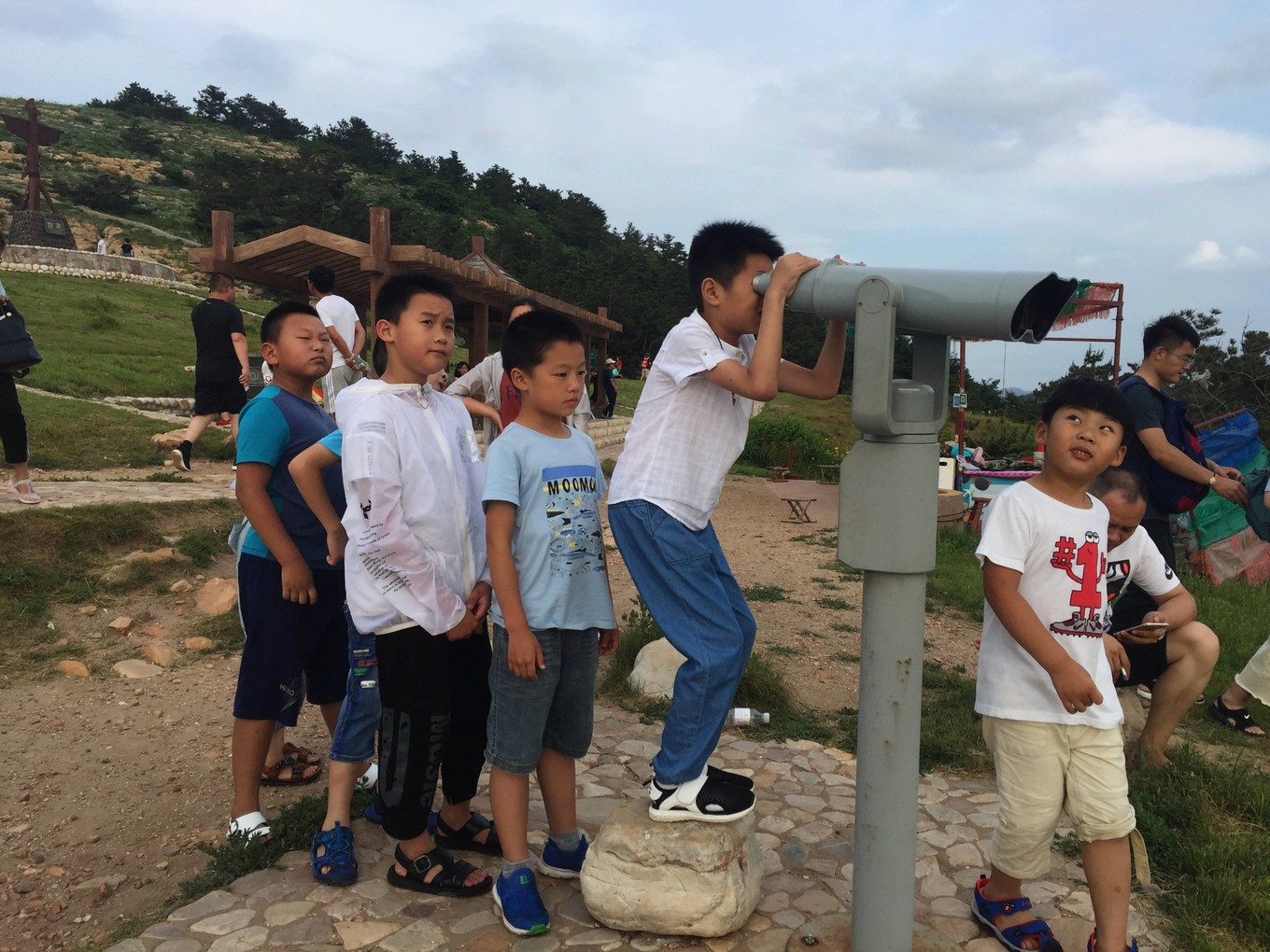 這是一幅比較讓我感動的畫面!兒子要看遠(yuǎn)方的海和山,給他掃碼付錢看了幾分鐘。期間,很多孩子涌過來,但是都非常自然地排成了隊!我們大人真的都要向孩子們學(xué)習(xí)才是!