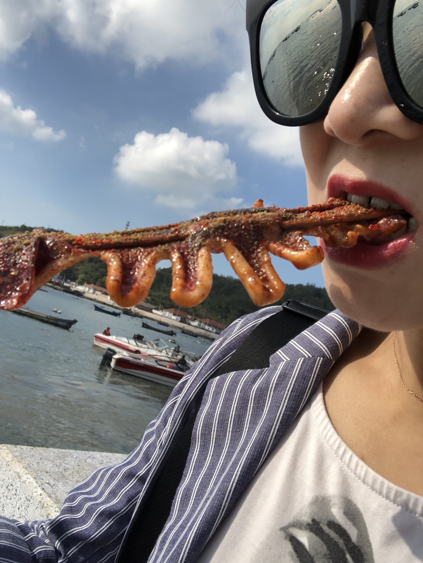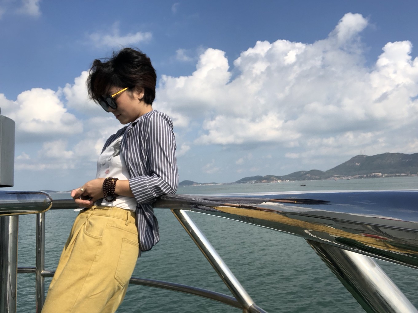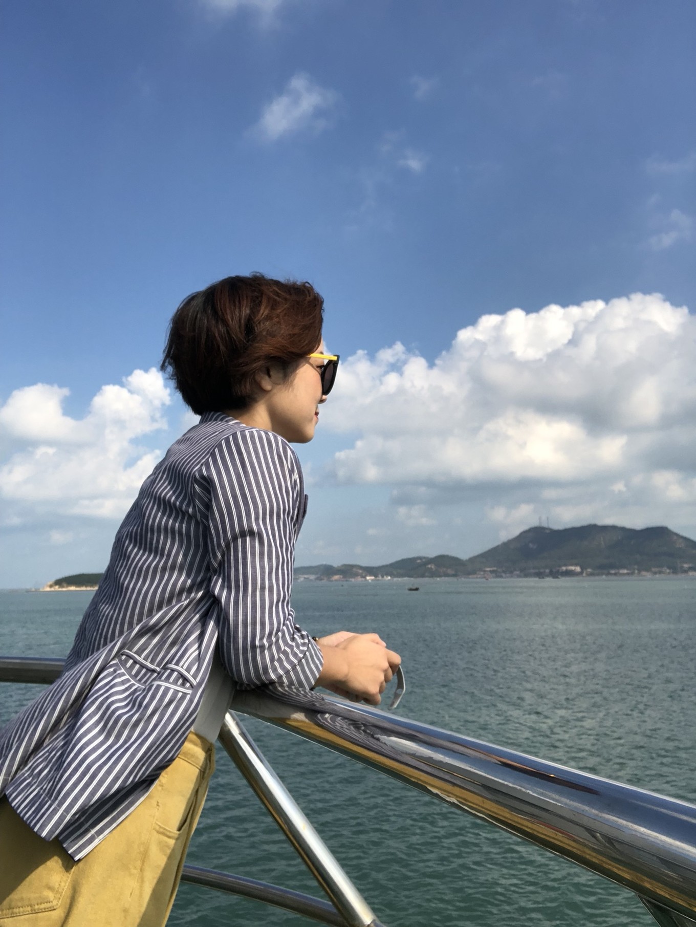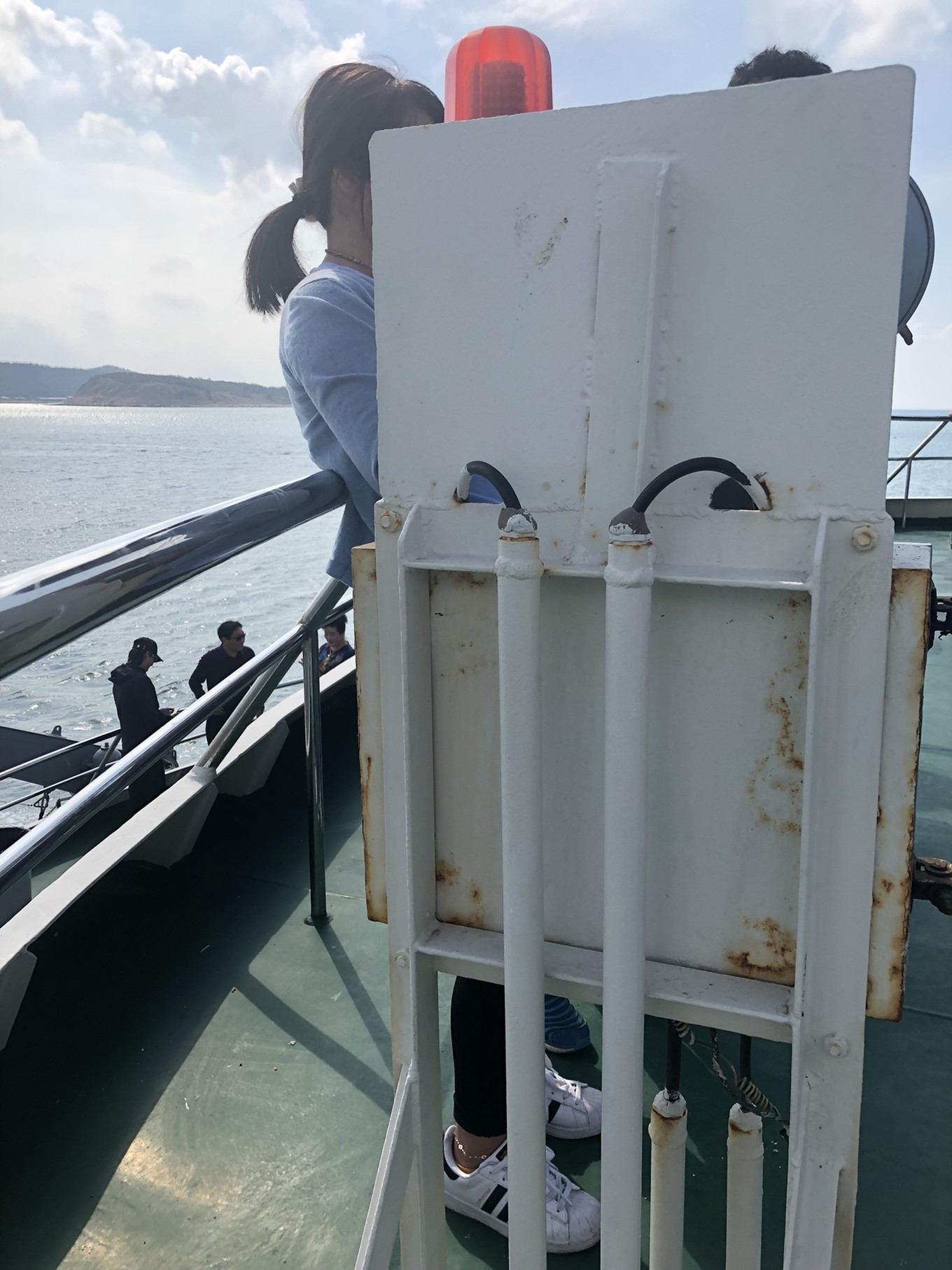 插播一條,上船等待出發(fā)的時候找到了個絕佳的地方自拍,沒錯,你們一個人來的話,找這個東西,手機擱上面,然后九連拍吧