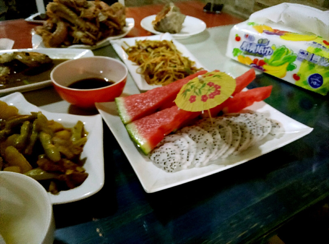 兩個人豐盛的晚餐 感謝老板準備的水果 很用心