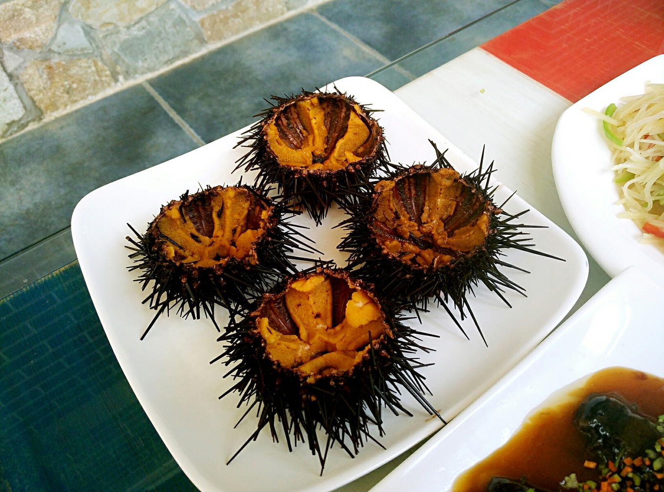 先入住酒店 海島記憶 酒店是提前預訂好的 在大眾點評上看了一些 聯(lián)系老板 老板是同齡人 感覺人也不錯就定下了 位置在王溝村有個小別墅群 地理位置很好(長島的旅游線路分兩條 南線和北線 如果想去玩景點的話兩天足夠其中九丈崖 月牙灣 烽山林海 望夫礁是貓覺得比較值得去的時間足夠也可以乘船出海 逛逛萬鳥島啥的 王溝村基本在南線北線之間 離縣城也很近 可以看日出) 環(huán)境也算干凈整潔 第一餐兩個人八個菜 海參2 海膽2 魚 1螃蟹4海蠣子豆腐湯 西紅柿炒雞蛋 魚香茄子 還有一個黃瓜拌海虹的涼菜 米飯湯可以加 兩個人沒吃完