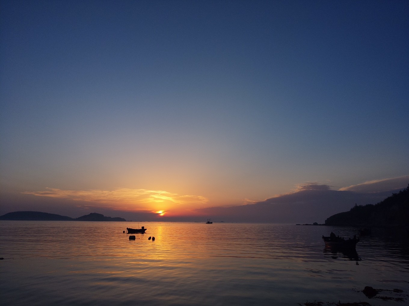 這次行程中最滿意的部分,釣魚島碼頭的日落,因?yàn)閱未纹钡脑蛉章涞臅r(shí)候我沒有再去九丈崖,從月牙灣出來聽出租車師傅的建議把我送到了釣魚島碼頭,比九丈崖的日落景色更加寬闊,整個(gè)碼頭只有我自己和后面漁家送來的四個(gè)路人小伙伴,拍出了本次行程最滿意的照片,以下圖片全部無濾鏡,無美顏哦