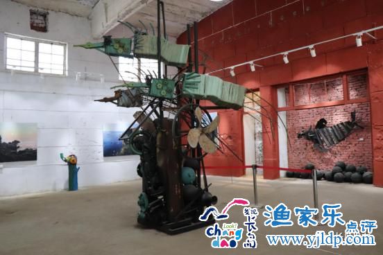 在這樣美麗的小島上,卻獨(dú)有一處奇妙的裝置藝術(shù)空間——BHC38°美術(shù)館,該展館是北隍城鄉(xiāng)與煙臺昌明文化傳媒公司合作,立足于海島廢棄的漁船機(jī)件等物資,進(jìn)行藝術(shù)加工,形成裝置藝術(shù)作品,供島外游客進(jìn)行觀賞,它是一個自我的宇宙,既陌生,又似曾相識。走進(jìn)這里你會發(fā)現(xiàn)這些作品展示形狀是海島熟悉的魚、蝦等造型,但走進(jìn)一看,會發(fā)現(xiàn)魚的嘴采用的是漁船的尾掛,魚的眼睛是由船部的水泵組成的,魚的軀干是由海上養(yǎng)殖的網(wǎng)籠拼接而成……粗獷與細(xì)膩、原始與現(xiàn)代的強(qiáng)烈對比,使你在走進(jìn)這個小小的美術(shù)館時,能收獲到海島風(fēng)情以外的文化氣息,或是能津津樂道于這些變廢為寶的無限想象,亦或是能成為刻在心里的那份鄉(xiāng)愁和北隍城島記憶。