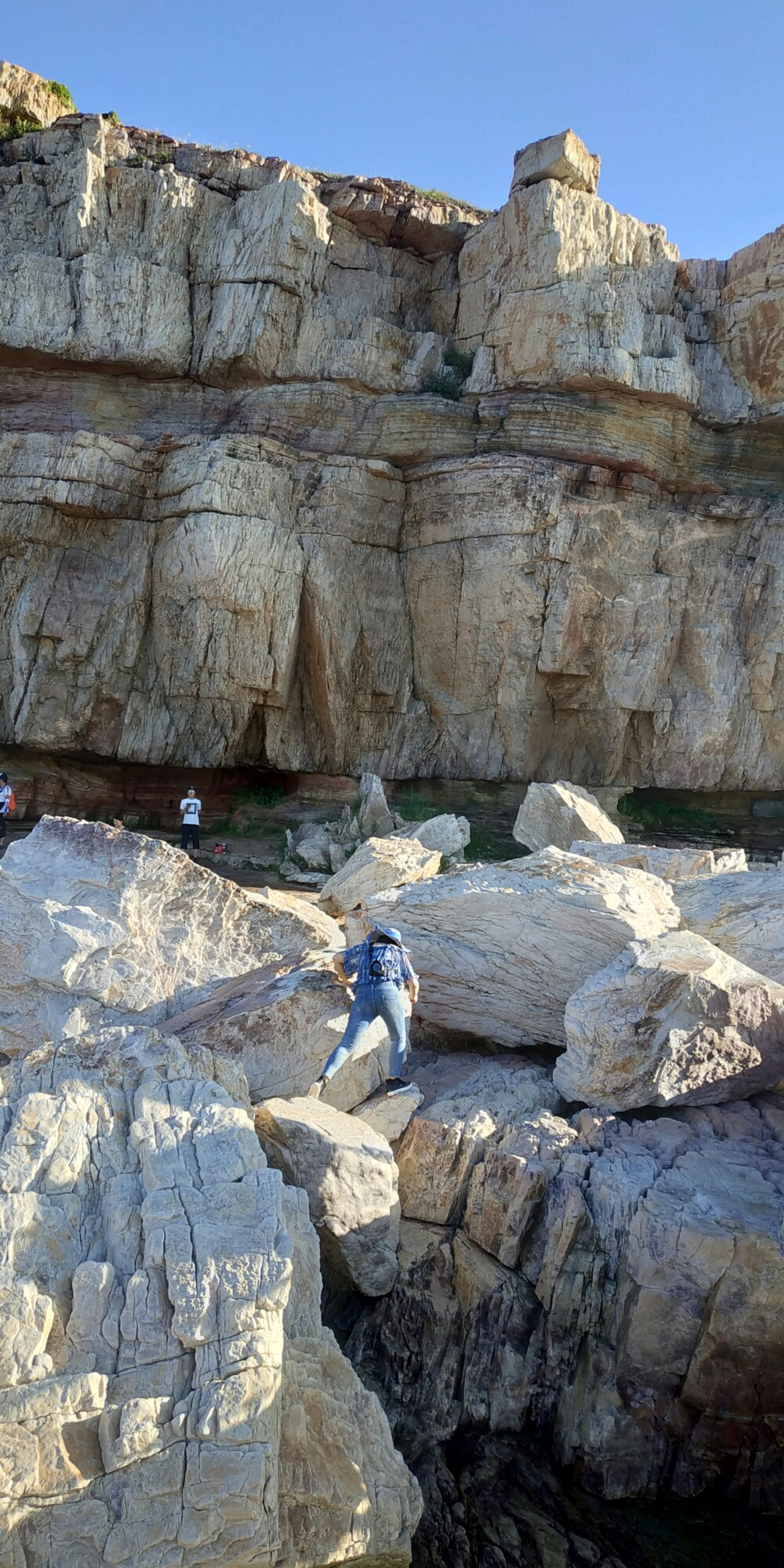 九丈崖,位于北長(zhǎng)山島西北角,西依珍珠門(mén)水道,北臨國(guó)際航線長(zhǎng)山水道,是一處集山、海、灣、礁、崖、洞于一體的地質(zhì)公園。