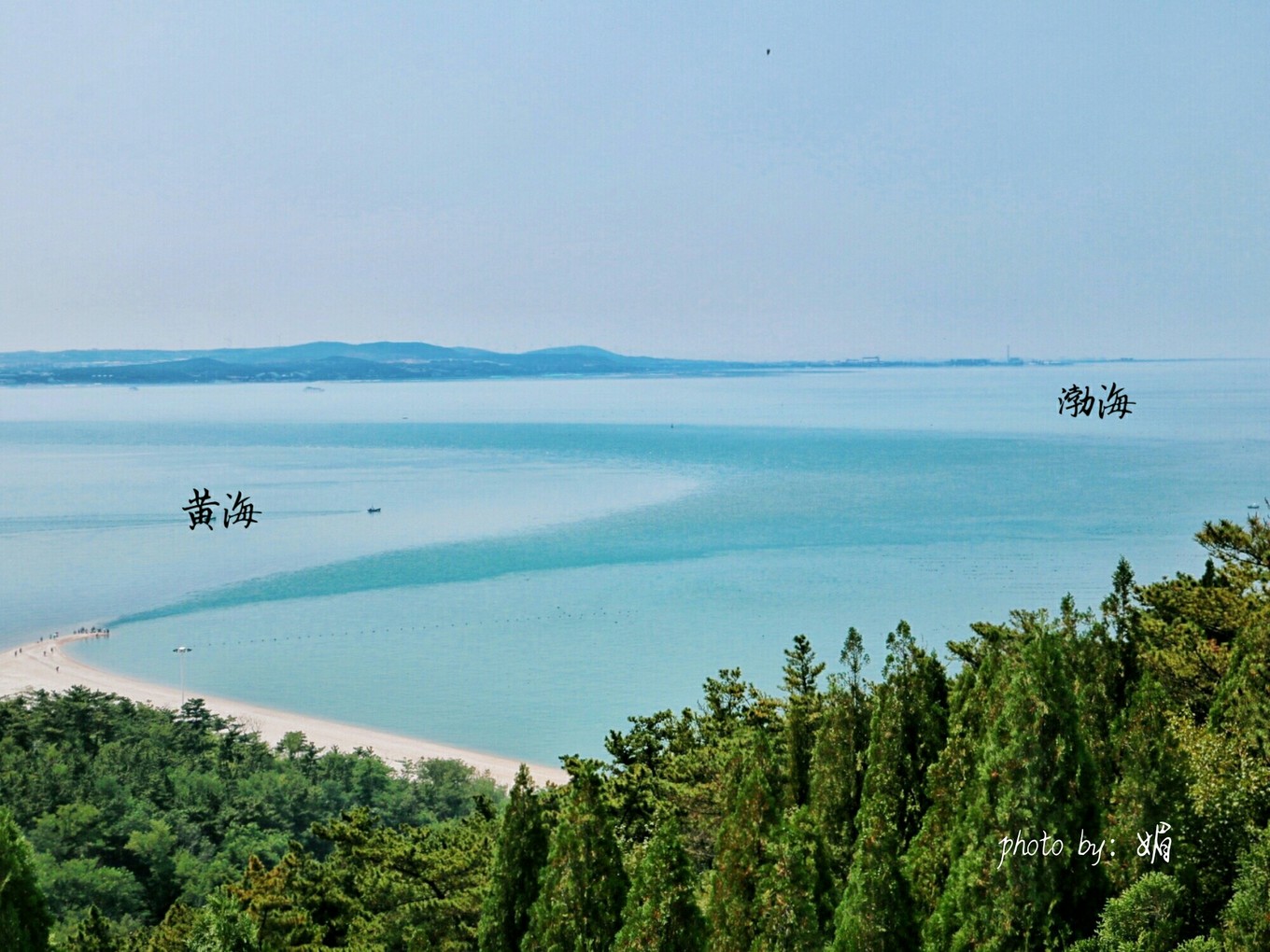 林海公園,可看黃渤海分界線,在交匯處還自然形成了一條尾巴狀的球石灘,起名長(zhǎng)山尾,大自然就是這么神奇啊~