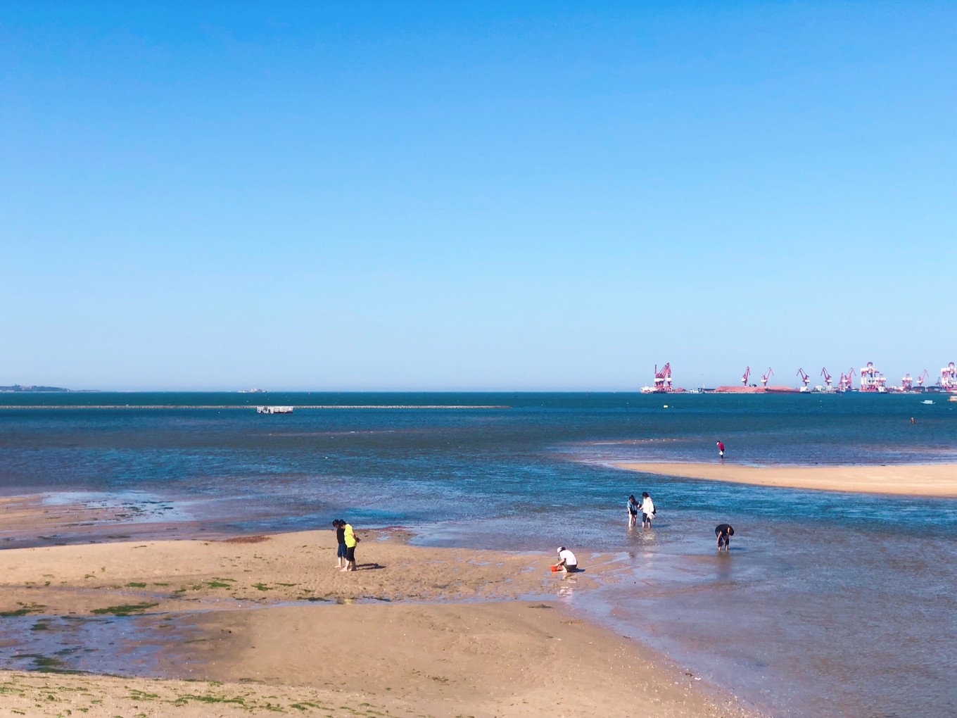 海邊好多小朋友和大朋友在撿....額,可能是小螃蟹