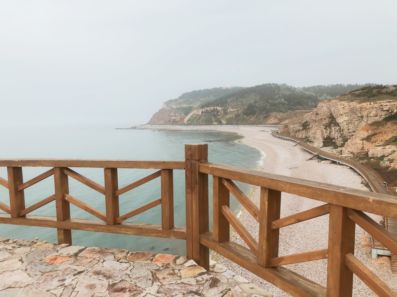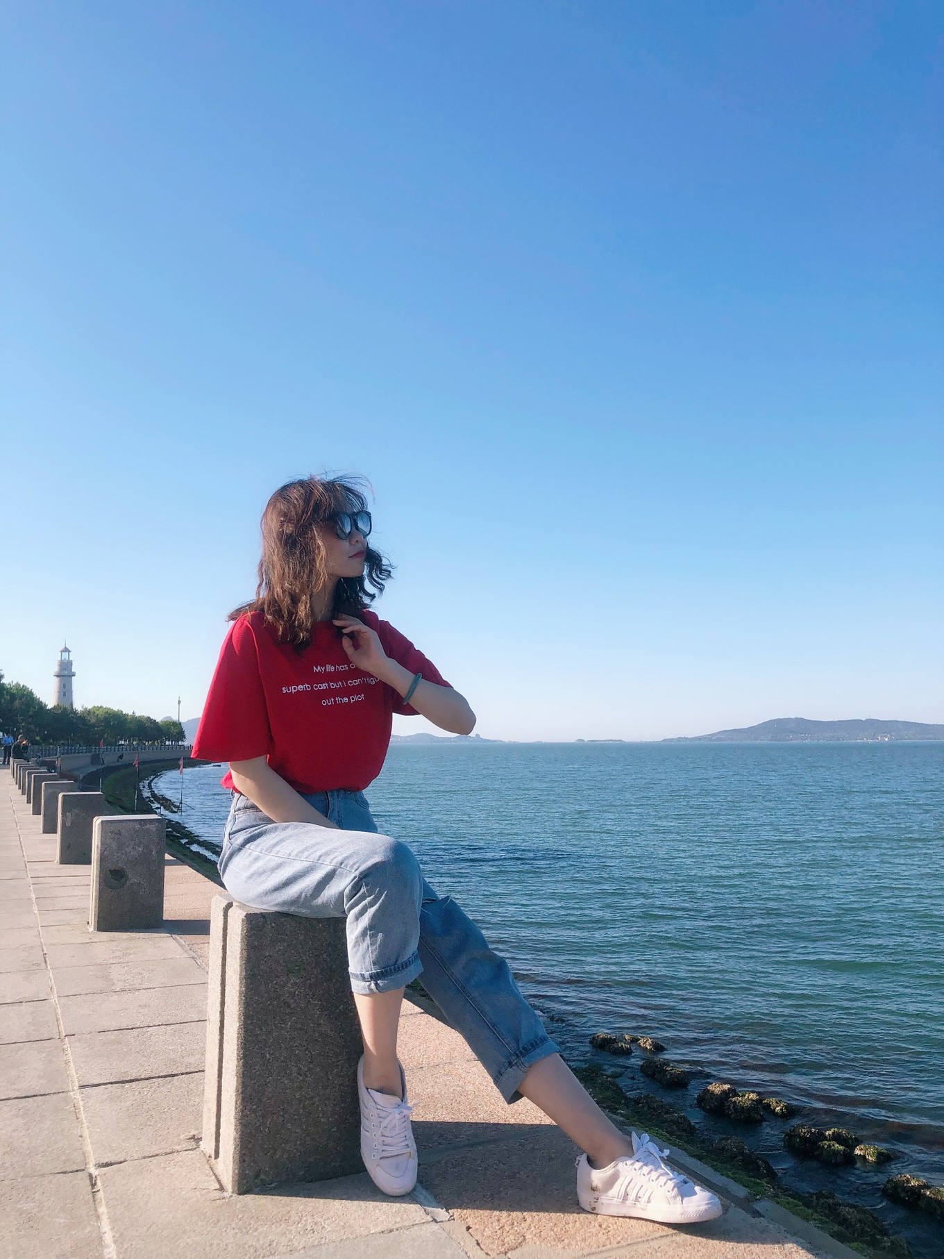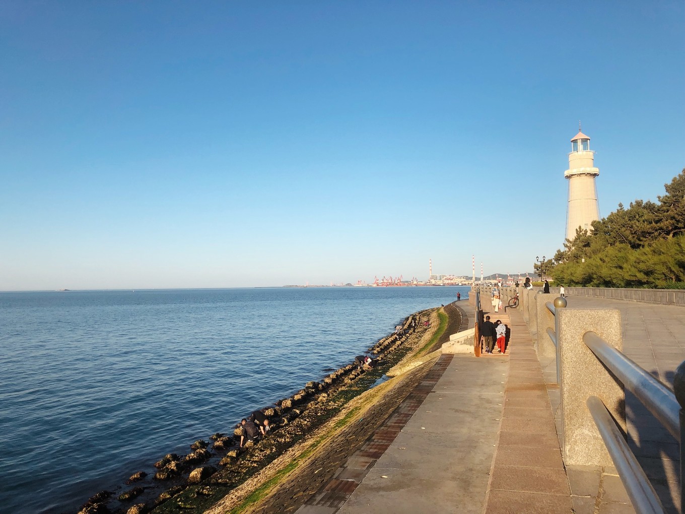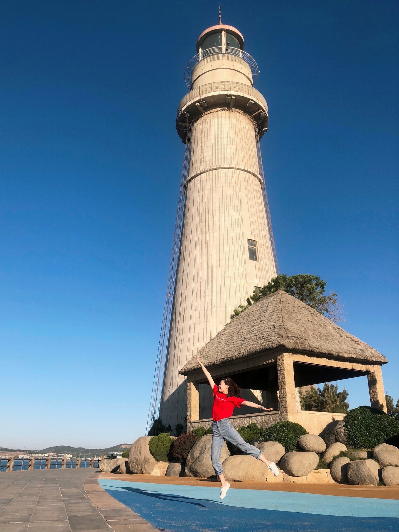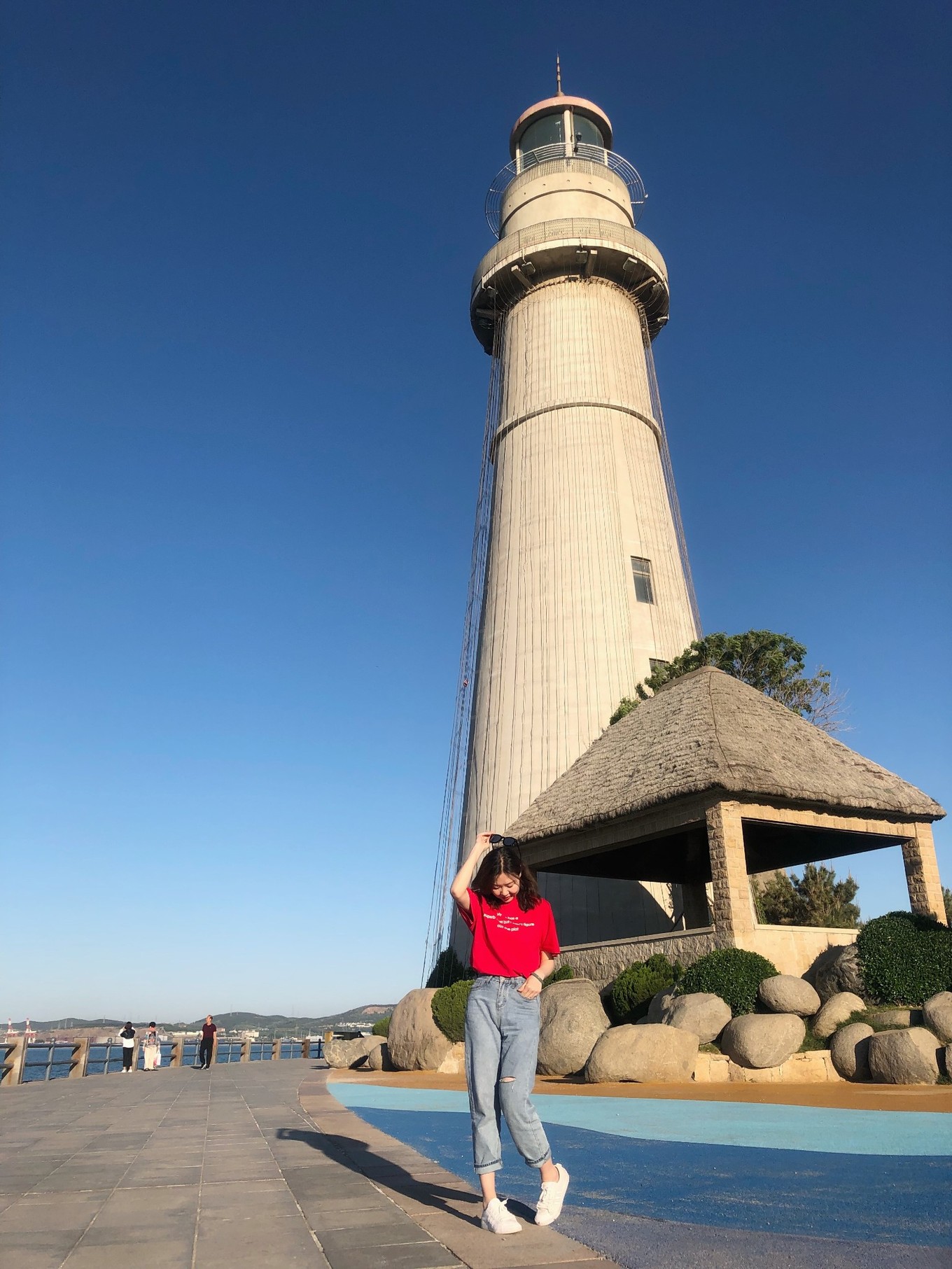 沿著海岸繼續(xù)走,遠遠地可以看到悅海公園的燈塔了