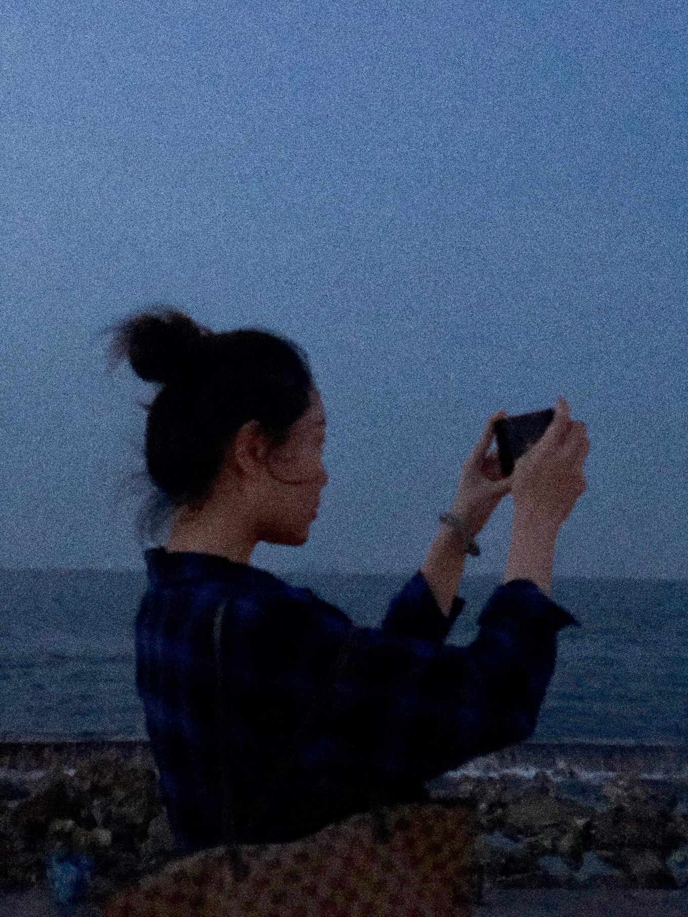 天已經(jīng)慢慢轉黑,我們倆人已經(jīng)凍到不行,沒想到五月底的煙臺竟會這么冷