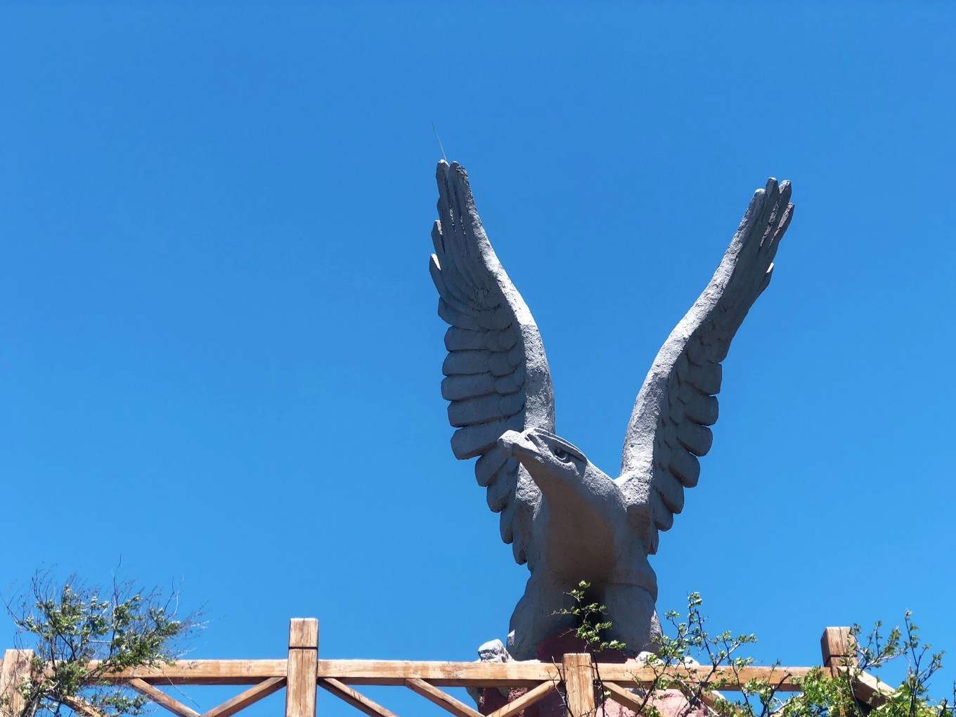 終于走到了烽山,沒想到還要爬山!山頂有個觀景臺,標志性建筑是一只老鷹的雕塑。