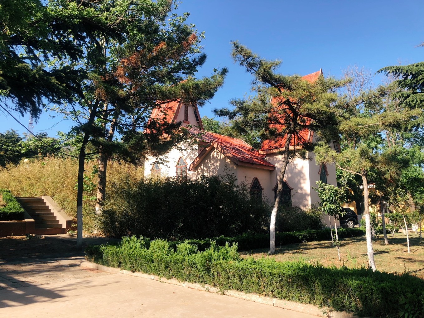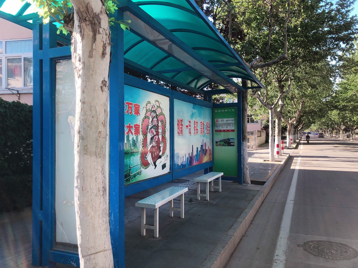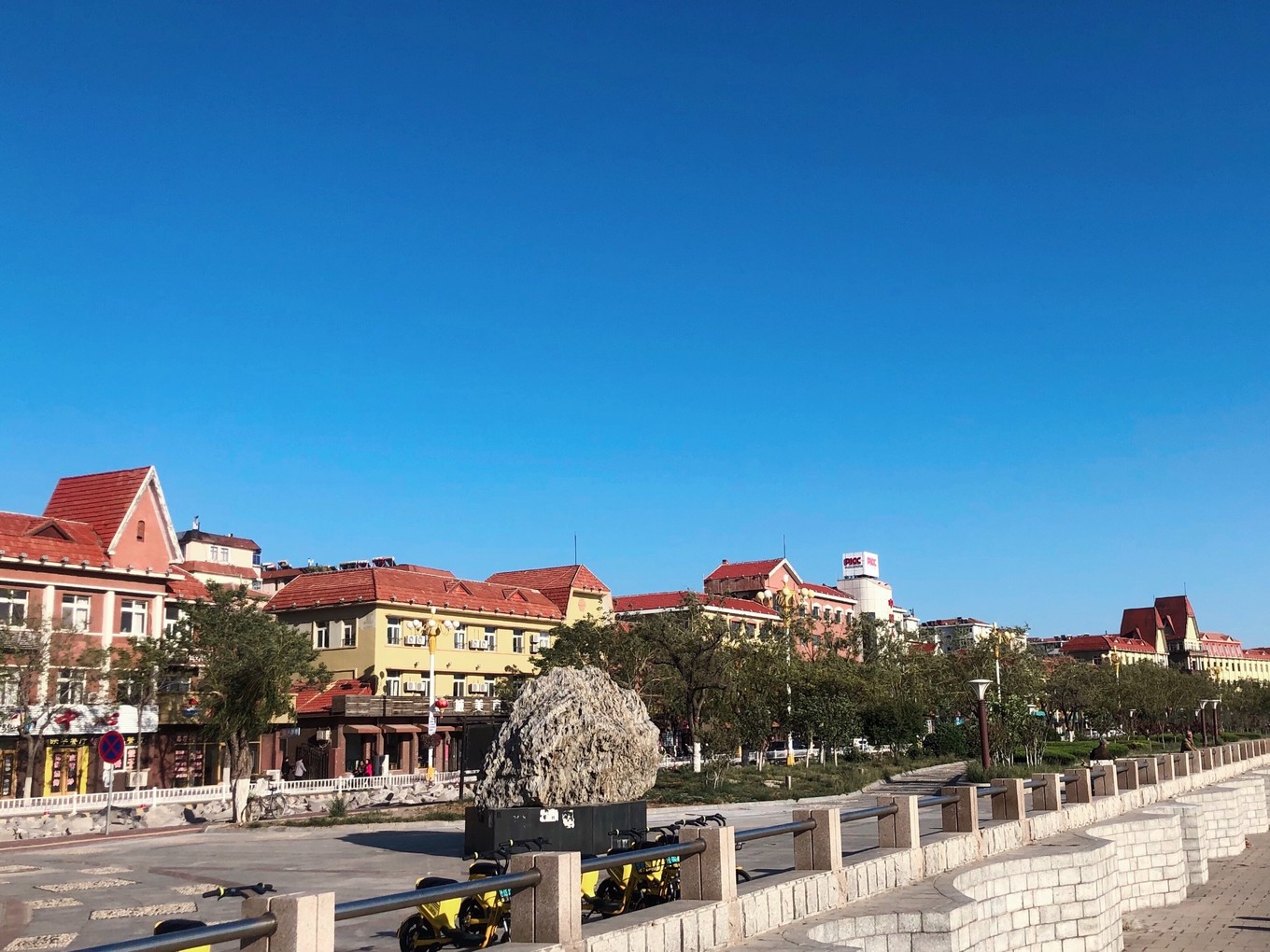 海邊的濱海路是島上最繁華的街道了,建筑風格也是山東典型的紅屋頂