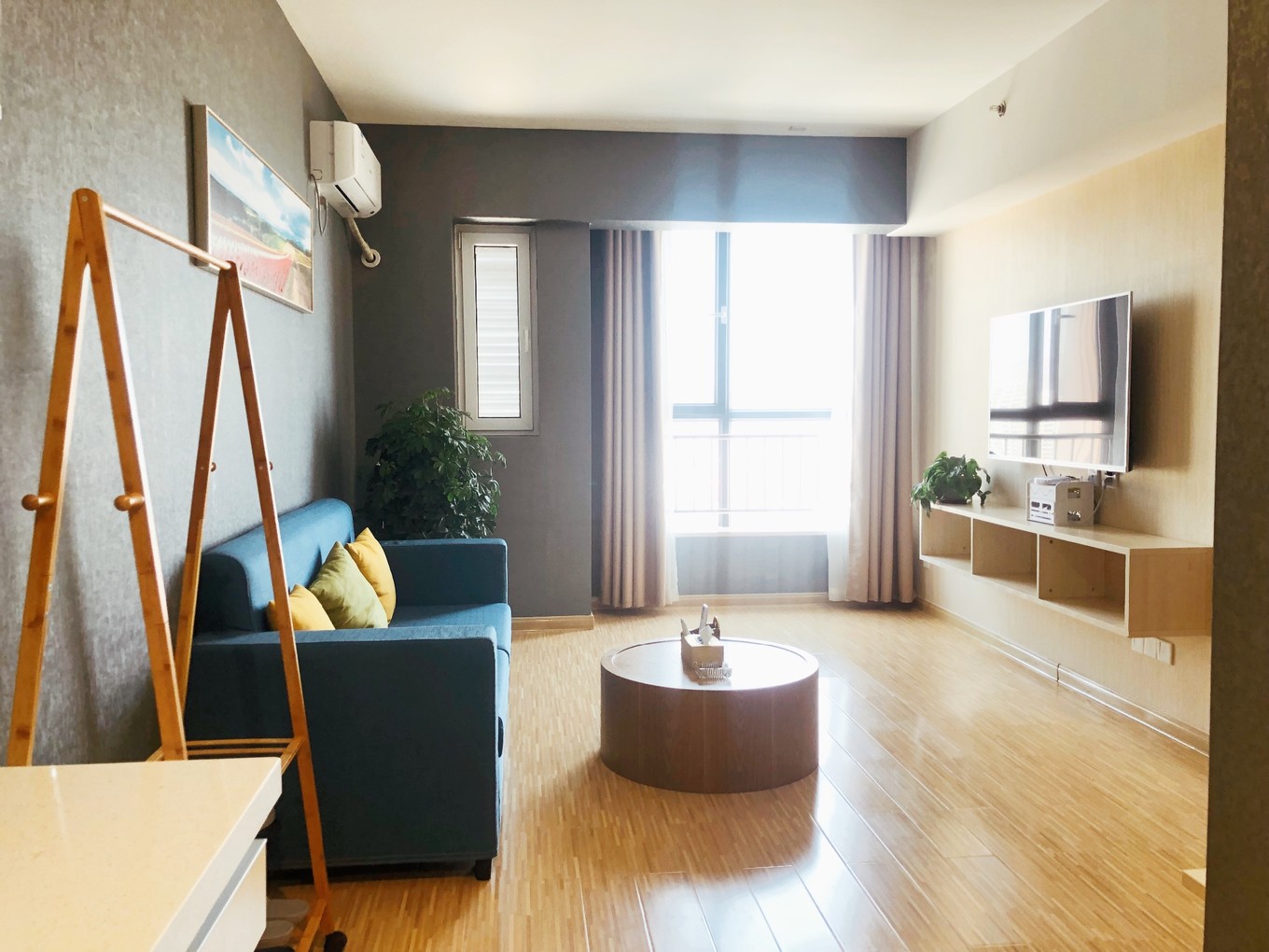 巨大的客廳,60寸的電視。坐在沙發(fā)就上可以看到大海!