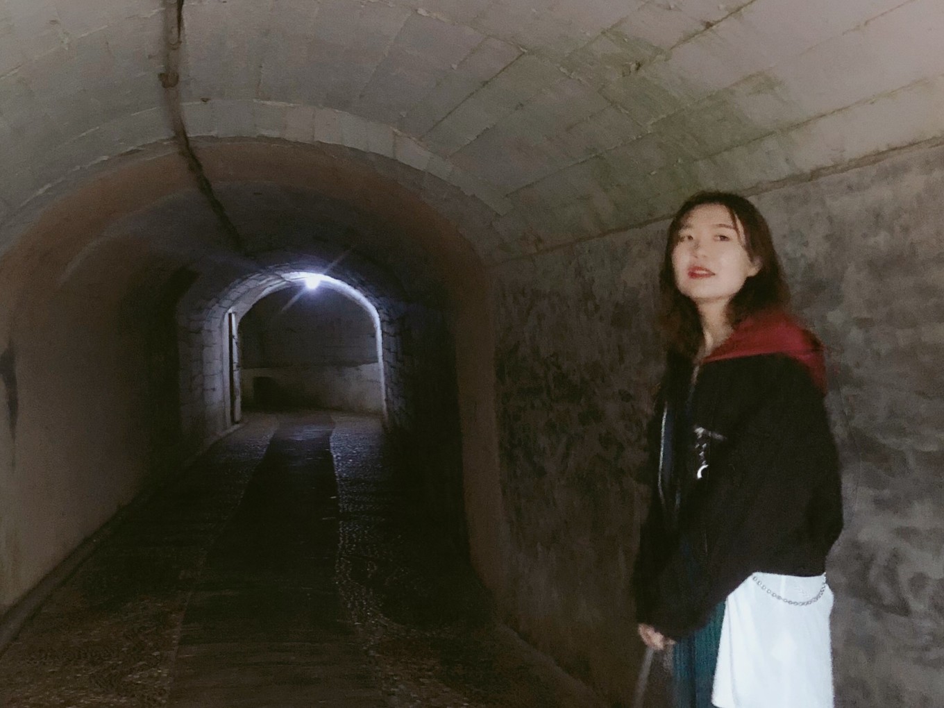 為了能快點回去我還是硬著頭皮決定從珍珠隧道回去走珍珠隧道。沒想到在珍珠隧道口上碰到了一對情侶,也正準備回去。真是太幸運了!然后發(fā)現(xiàn)珍珠隧道里的燈已經(jīng)熄滅了,要不是碰到他們我死也不敢進去?。?br>一路和這對重慶小情侶聊天發(fā)現(xiàn)他們也住在南島