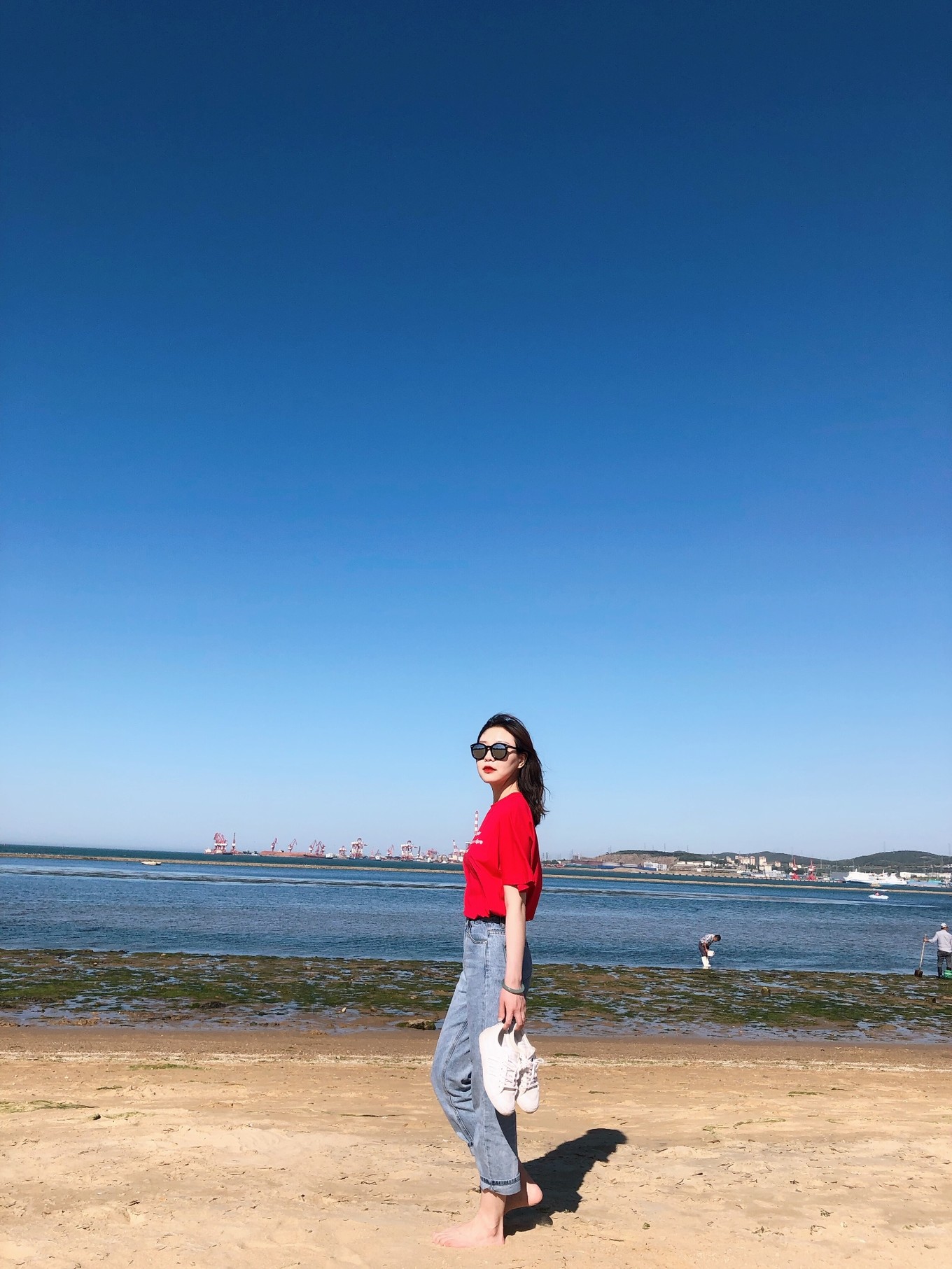 哈哈~脫掉鞋下去踩踩沙子