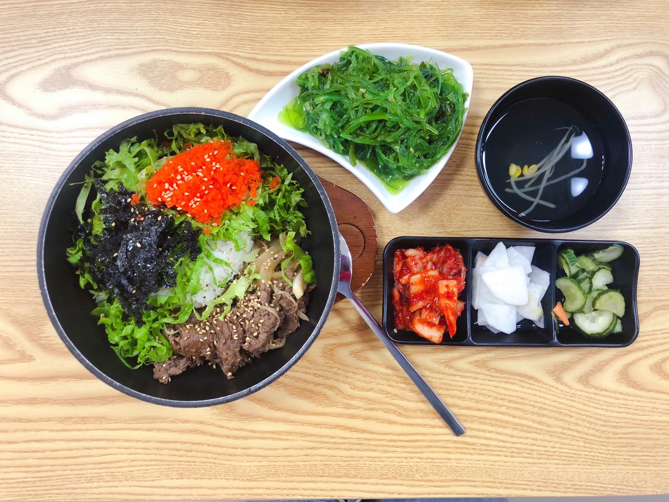 大眾點評上篩選了幾家評分高的韓餐以后,我們決定先去吃愛村魚籽拌飯。