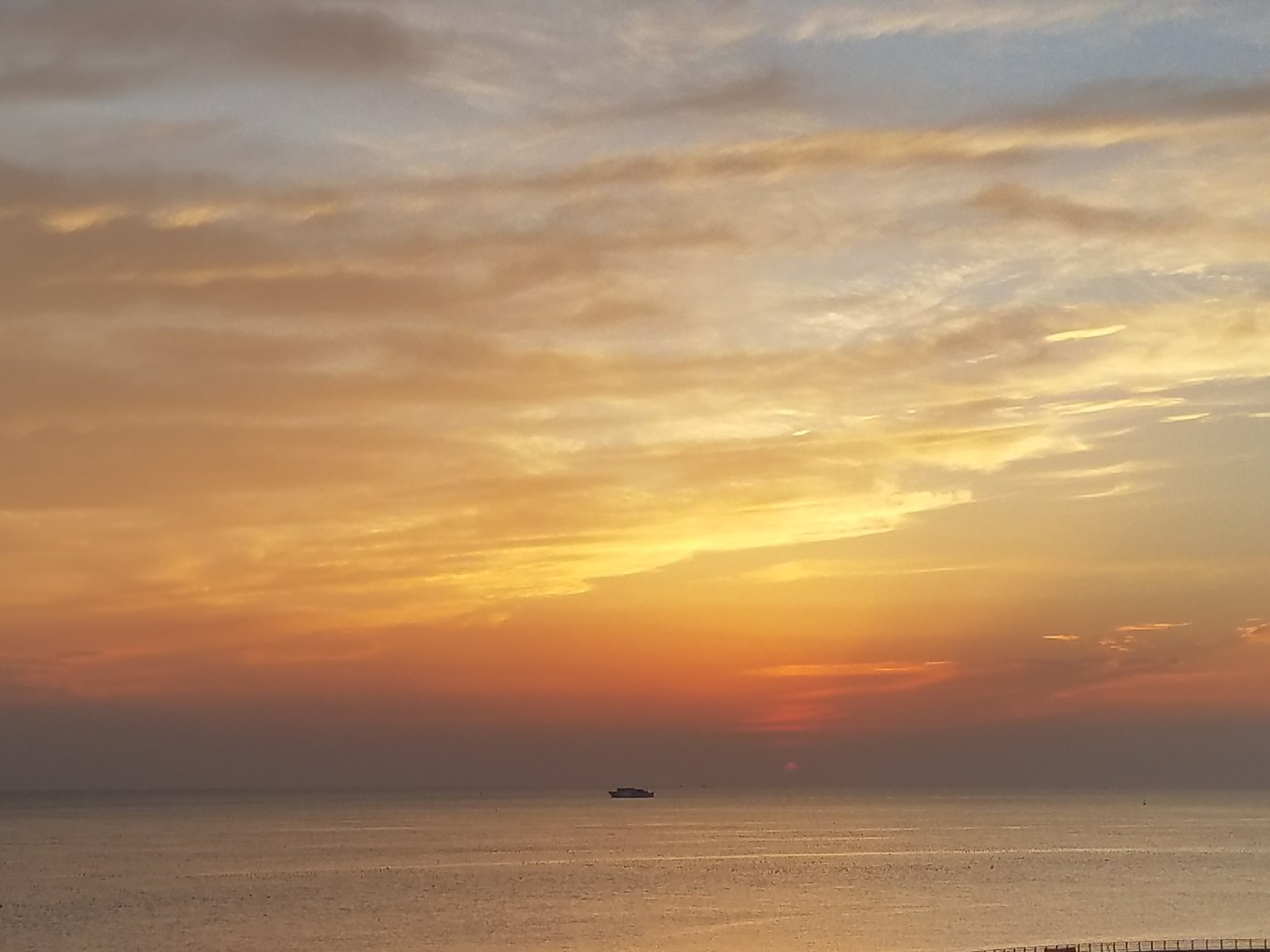 出來之后,司機送我們回南島,路過跨海大橋的時候,他說這里是長島看日落最好的地方,遠處有小山,稍近一點有漁船,這些景致給落日更添幾分色彩,如癡如醉。