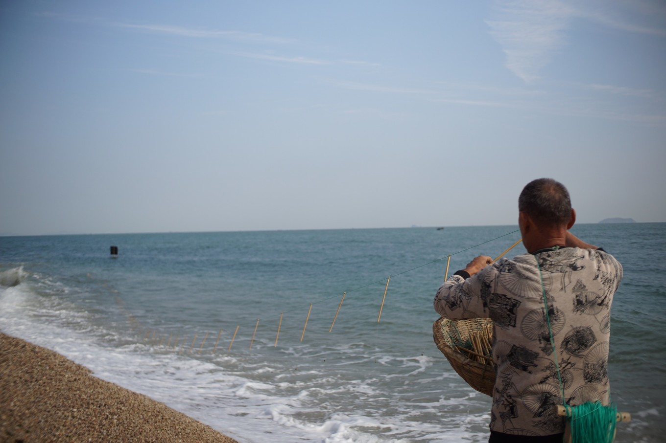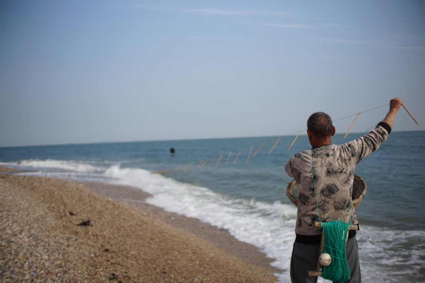 從界碑處下來,就看到等著我們的司機,該返回漁家了?;厝サ穆飞蟿偤每梢钥吹饺章?,他主動停下來等我們拍照。