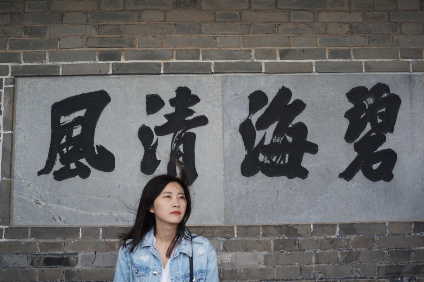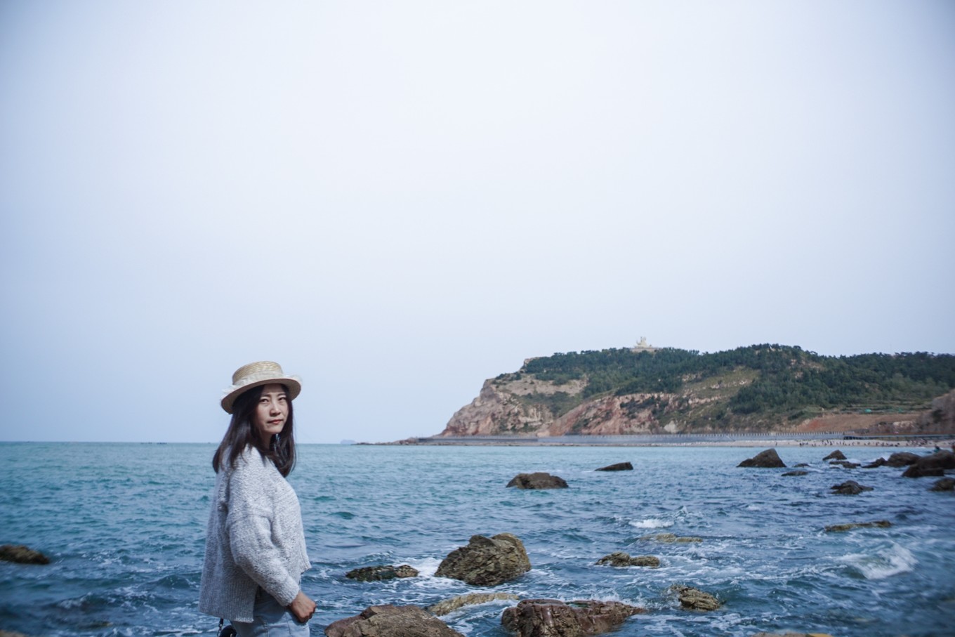 我和B一路走到了蓬萊閣前面,人山深海。機智如我們,穿過了一條條小道,來到閣樓后方,面朝大海,海風迎面吹來,凌亂了發(fā)絲。既然來到了閣樓底下,哪有不上去的道理,于是又在人群中穿行,得以一睹八仙真容。聽到有人說由于風太大,到長島的航線還是沒有開,都打算要退房了,可是想想,千里迢迢來到這里,不就是為了長島嗎,于是在網上查找電話,確認是否通航,終于,得到了好消息,之前的不快一掃而光。