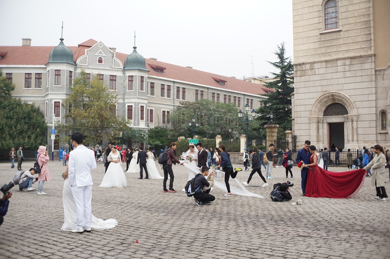 第二天起來之后,看了看地圖,天主教堂離得不是很遠,qiangwoapp.com車又不好坐,干脆走了過去。然后,我們來到了今天的第一個婚紗照圣地——浙江路天主教堂。