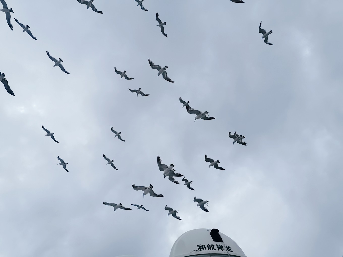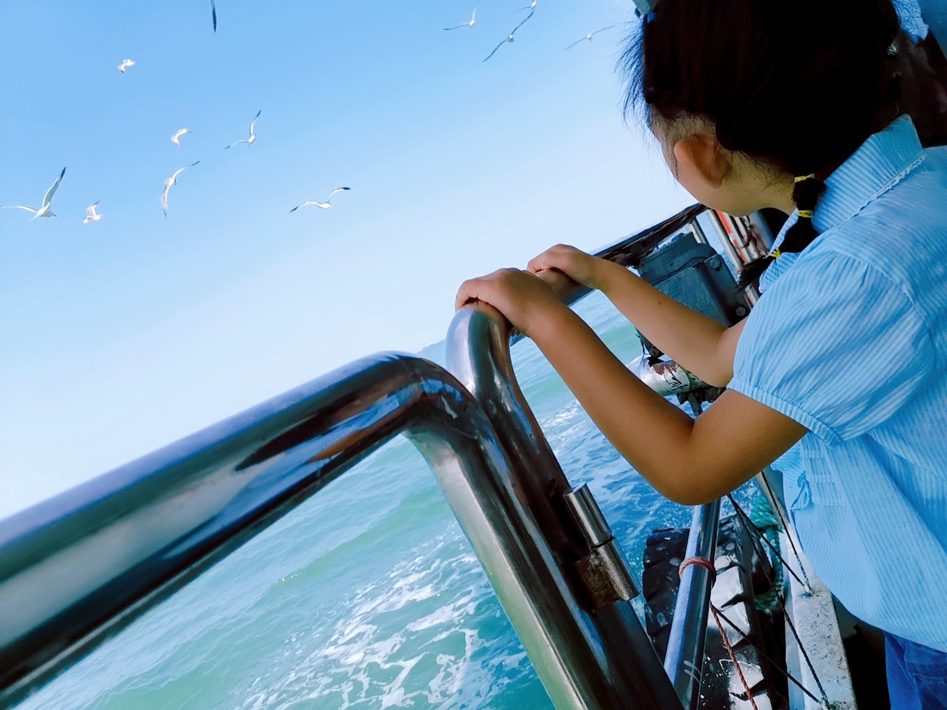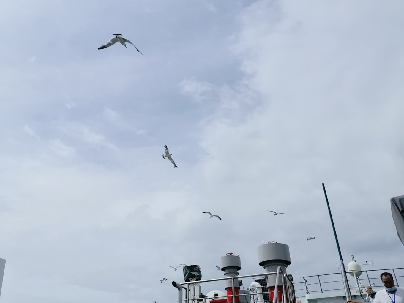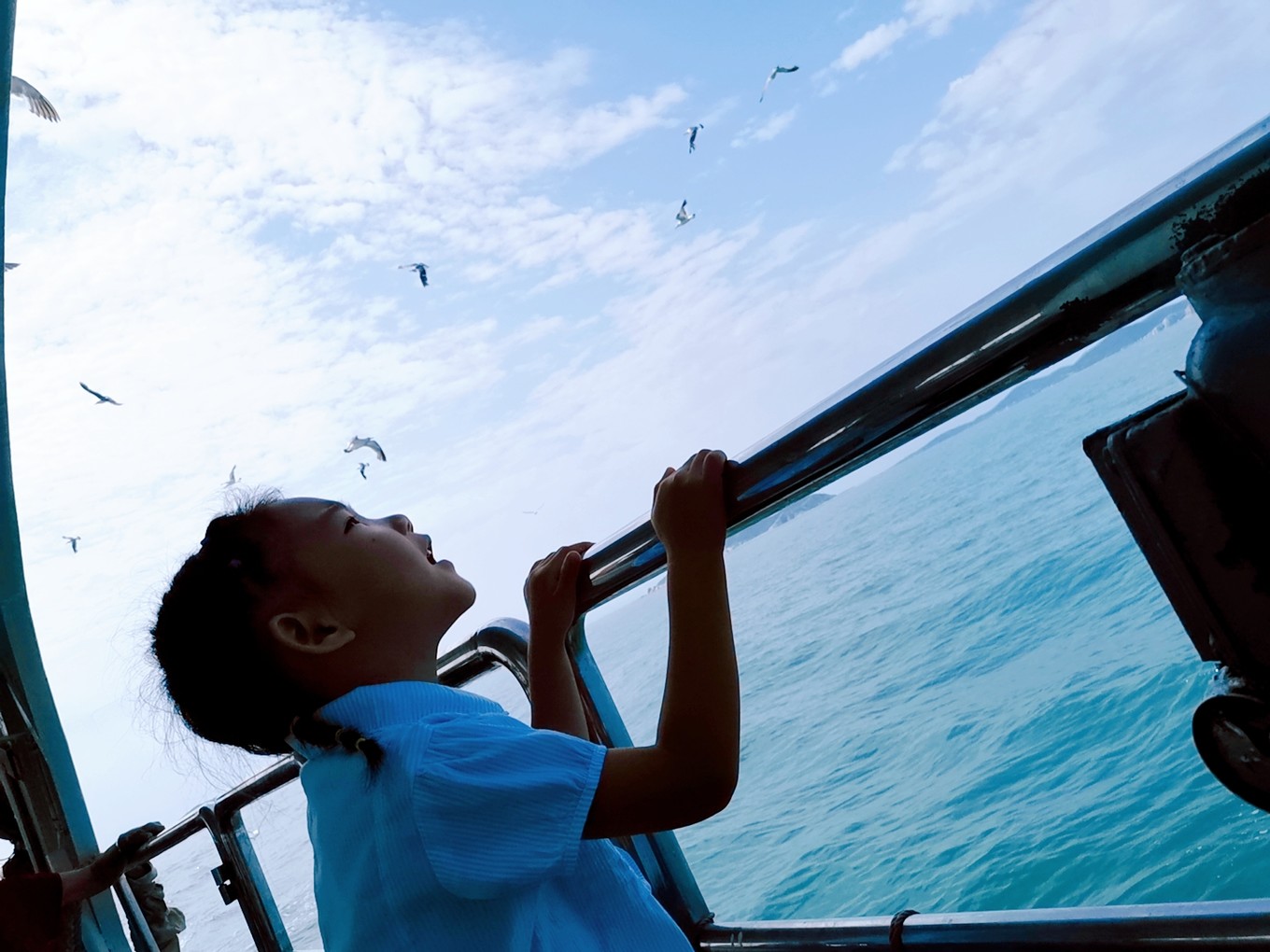 就要離開長島了,登上了客船,大群的海鷗仿佛在為我們送別。