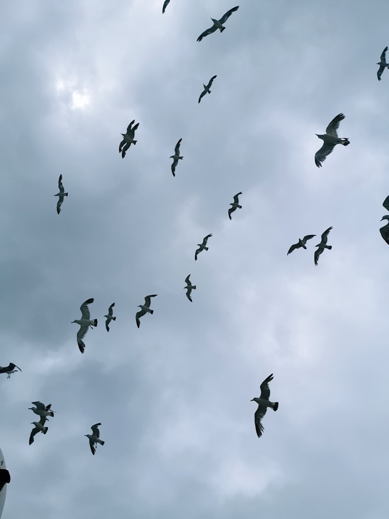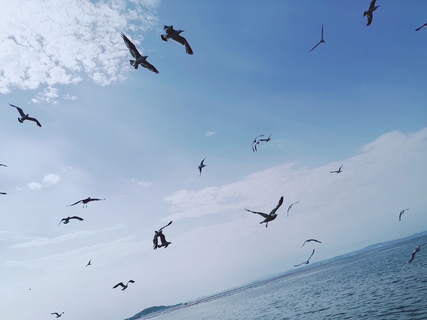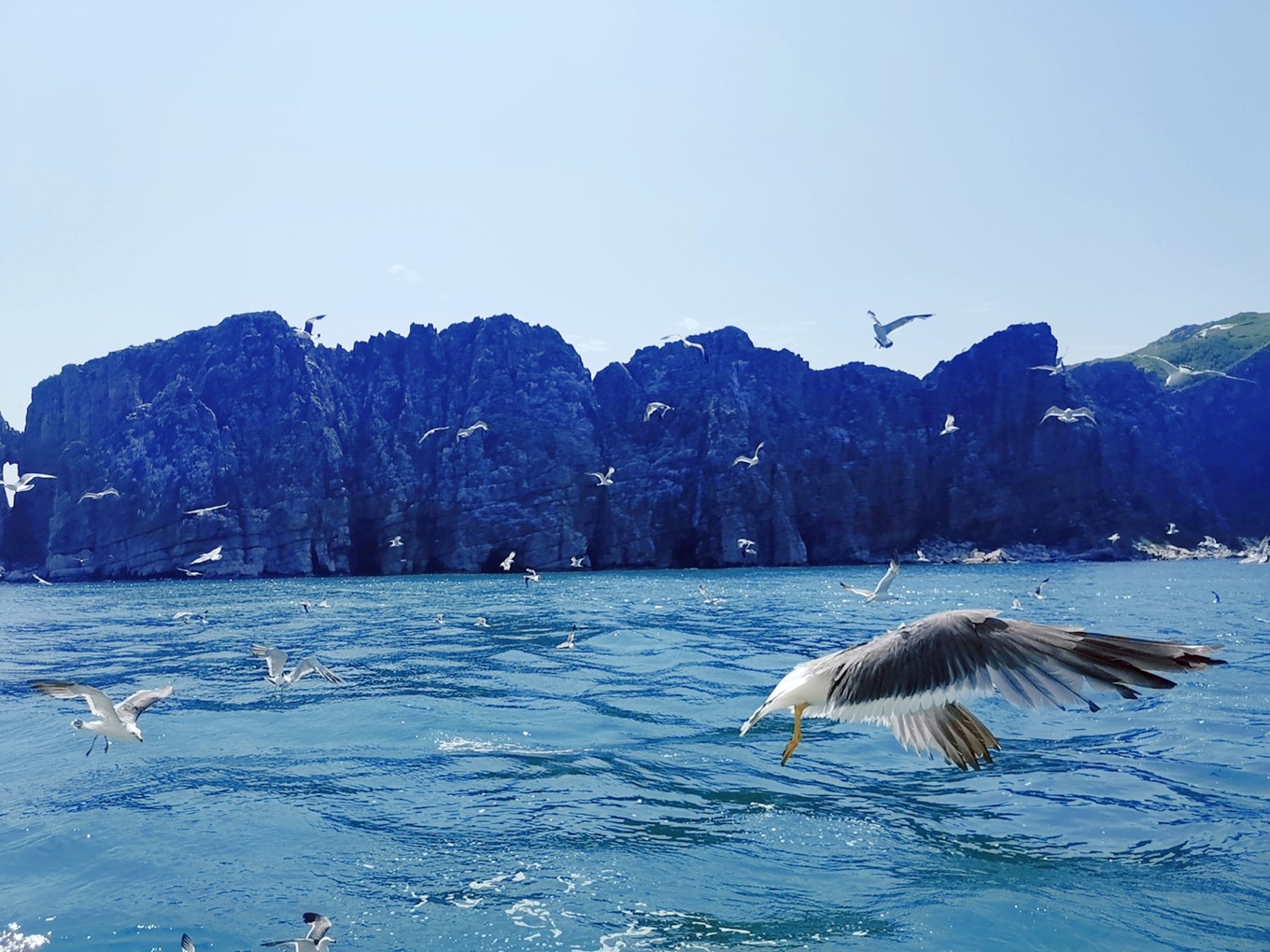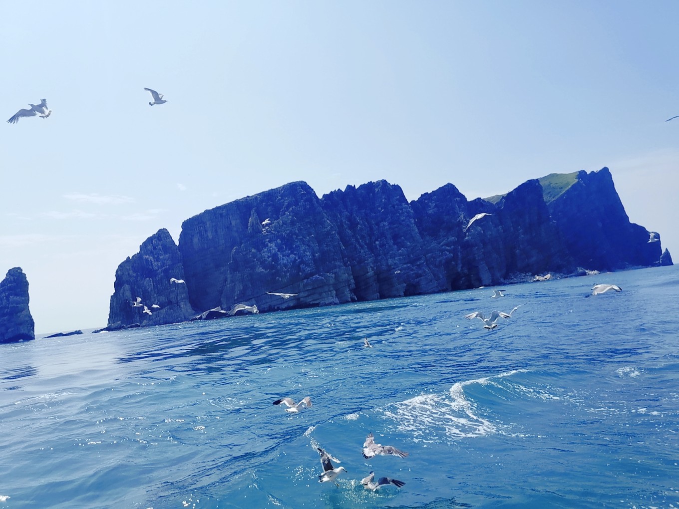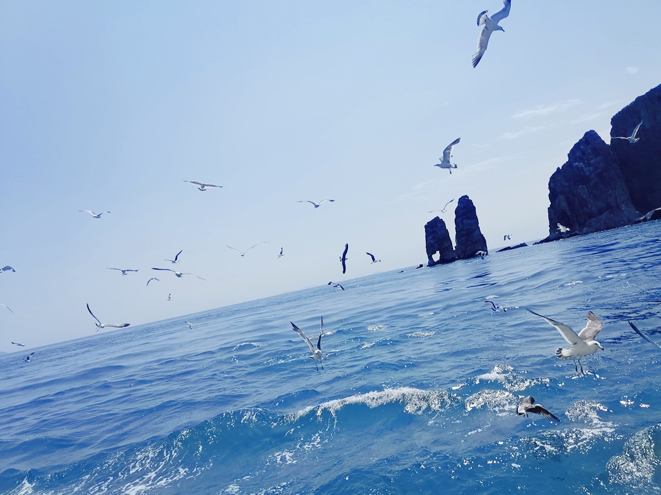 就要離開長島了,登上了客船,大群的海鷗仿佛在為我們送別。