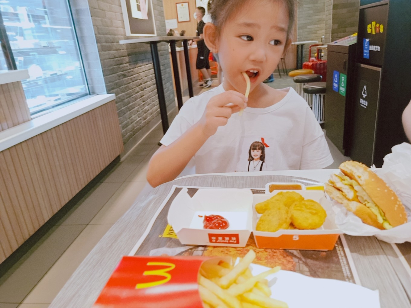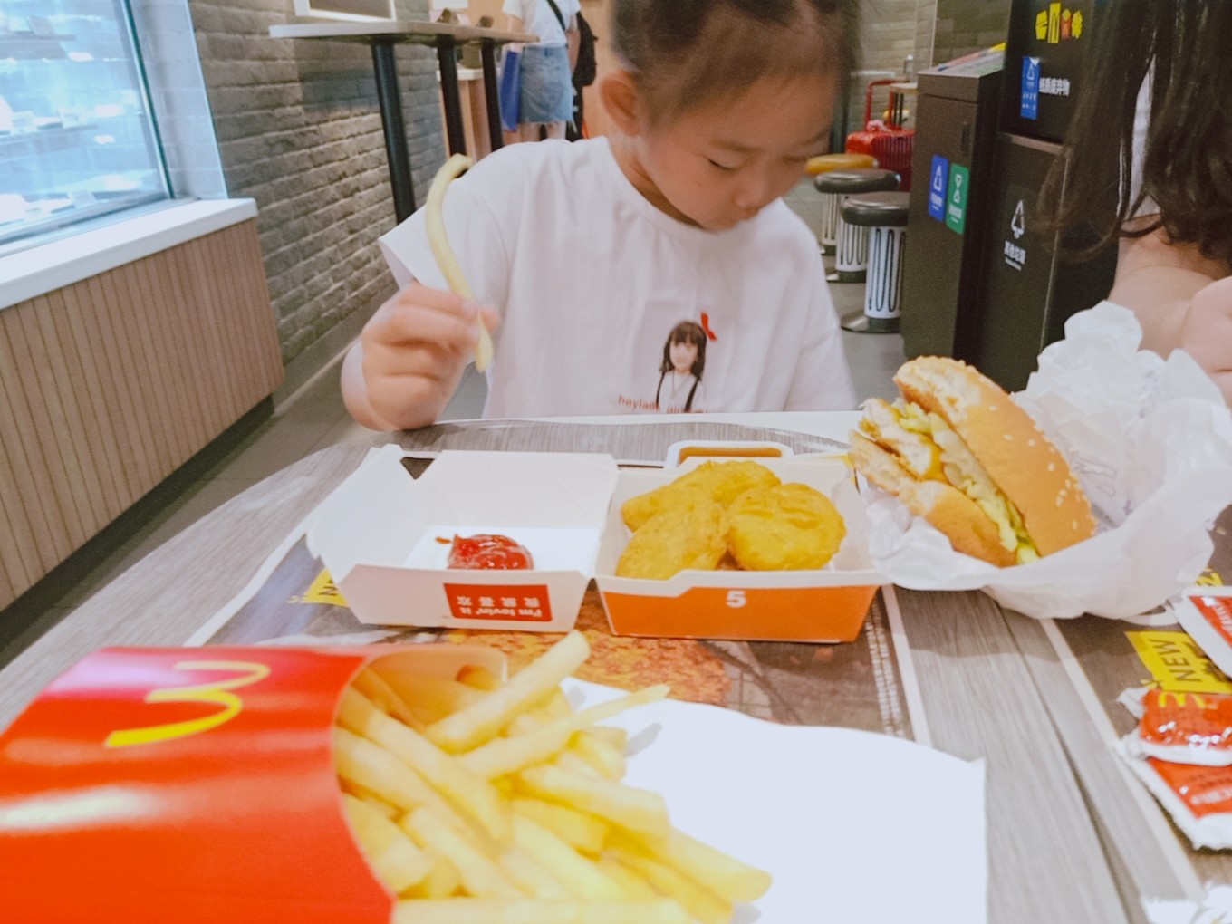 機(jī)場的麥當(dāng)勞雖貴,可一上午的時間也不能讓娃兒餓著,吃吃喝喝逛逛機(jī)場。