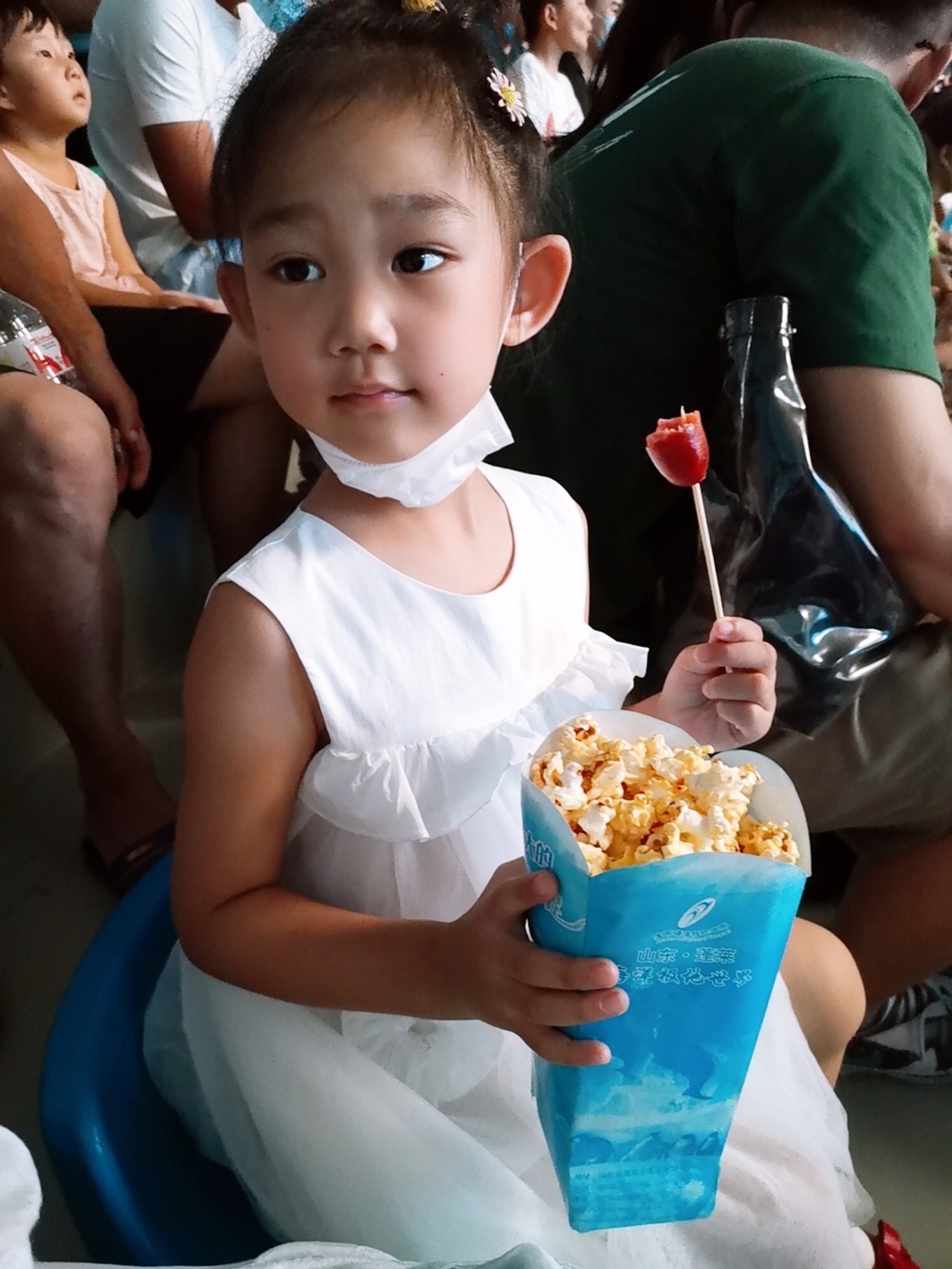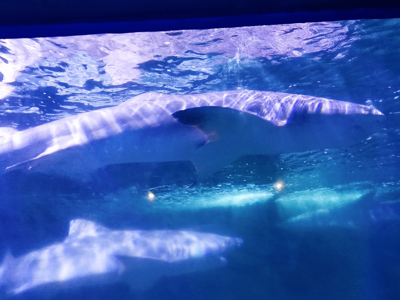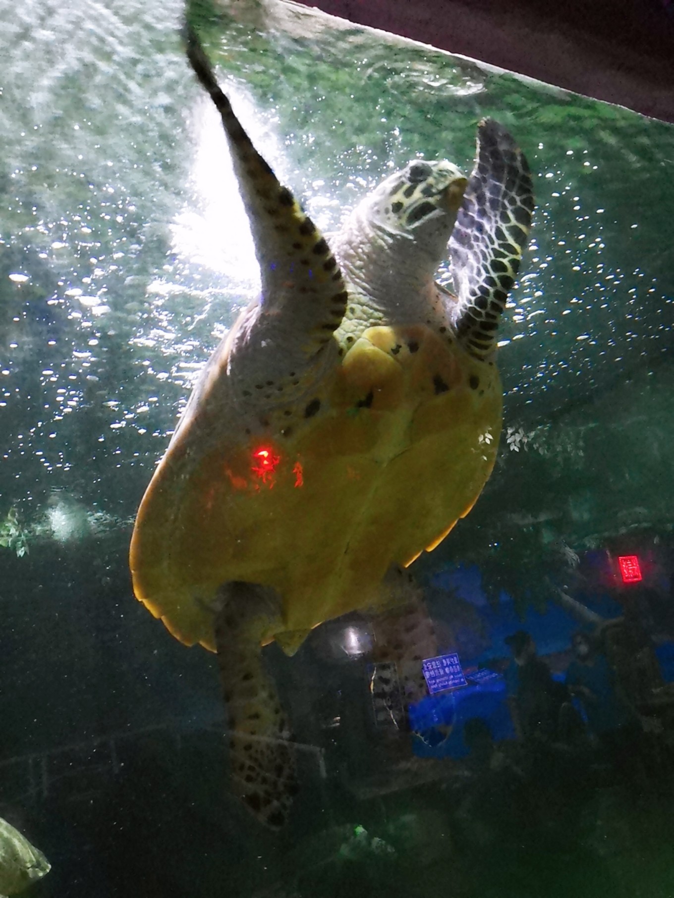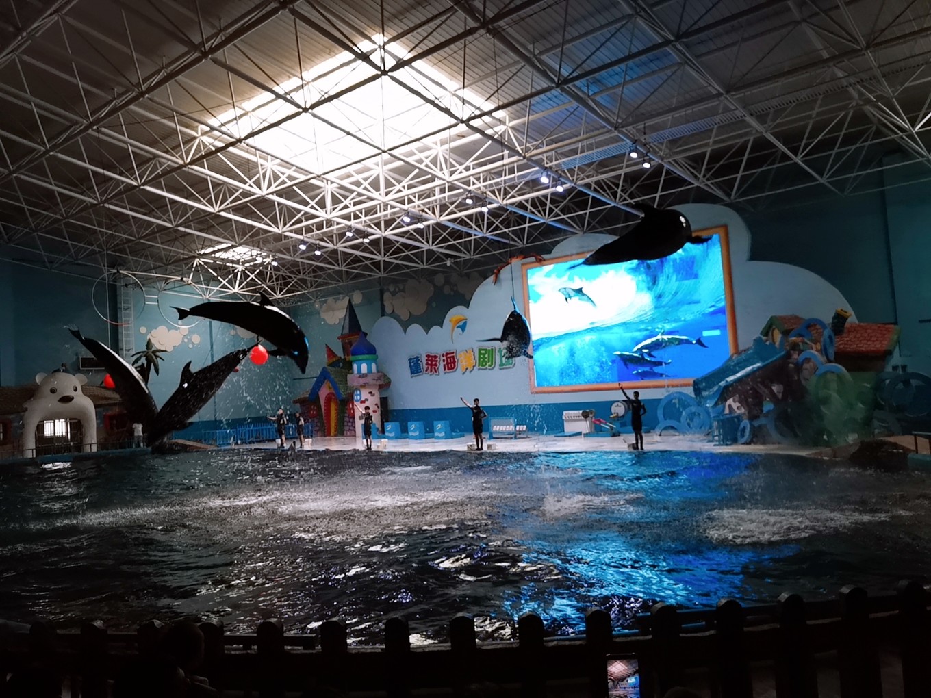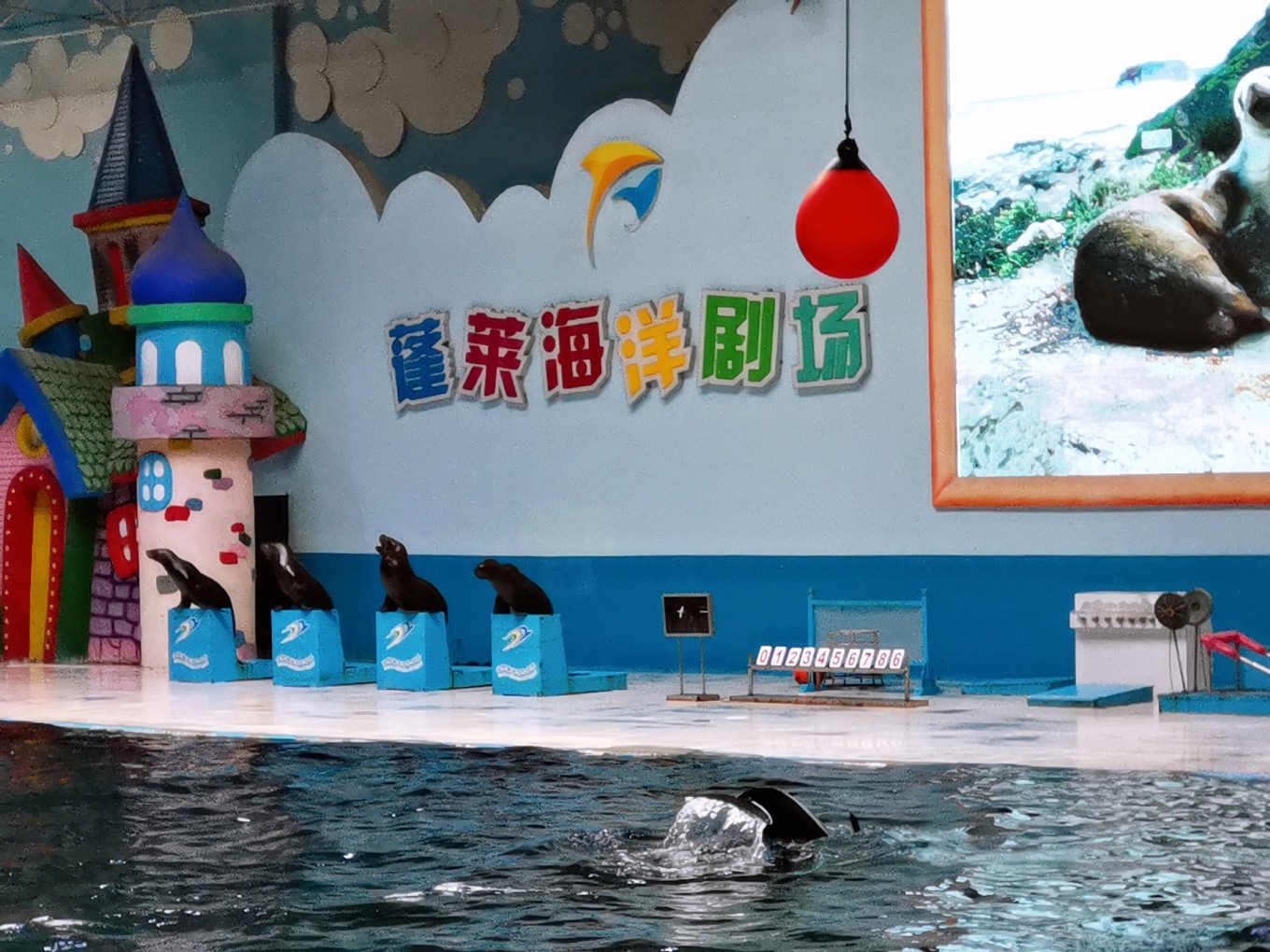 剛下碼頭,便存好行李來到附近的蓬萊極地海洋世界陪同孩子玩耍。