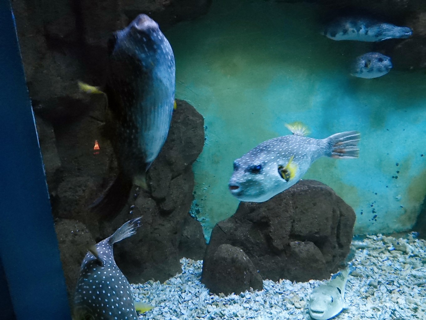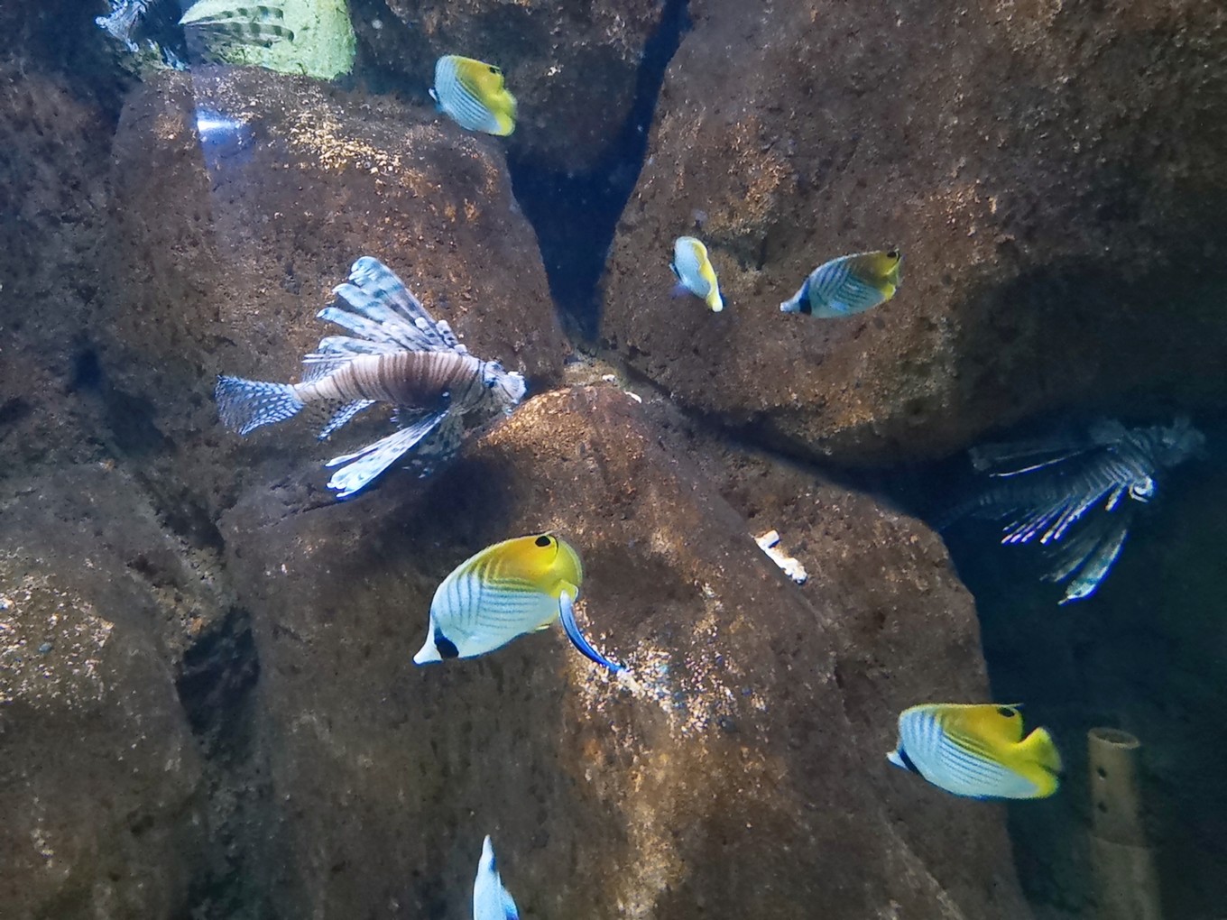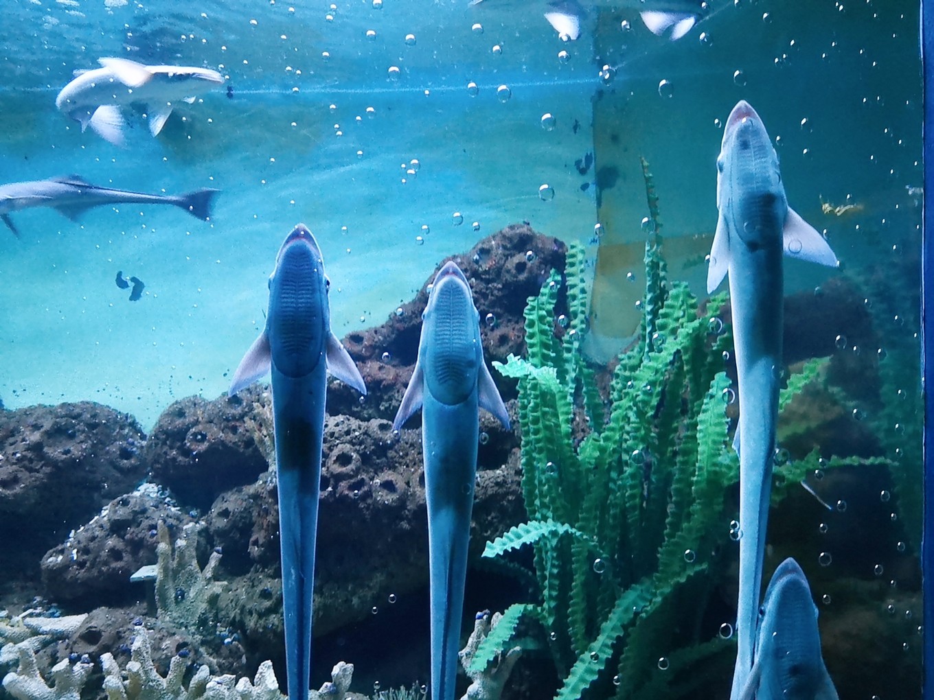 各種魚兒在水里游弋,或龐大,或嬌小,或兇猛,或憨態(tài)可掬。