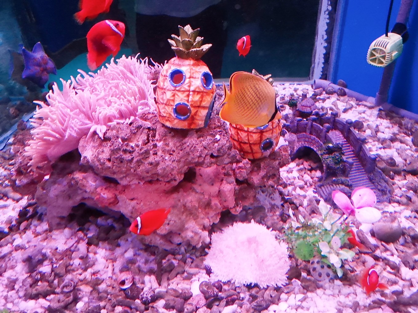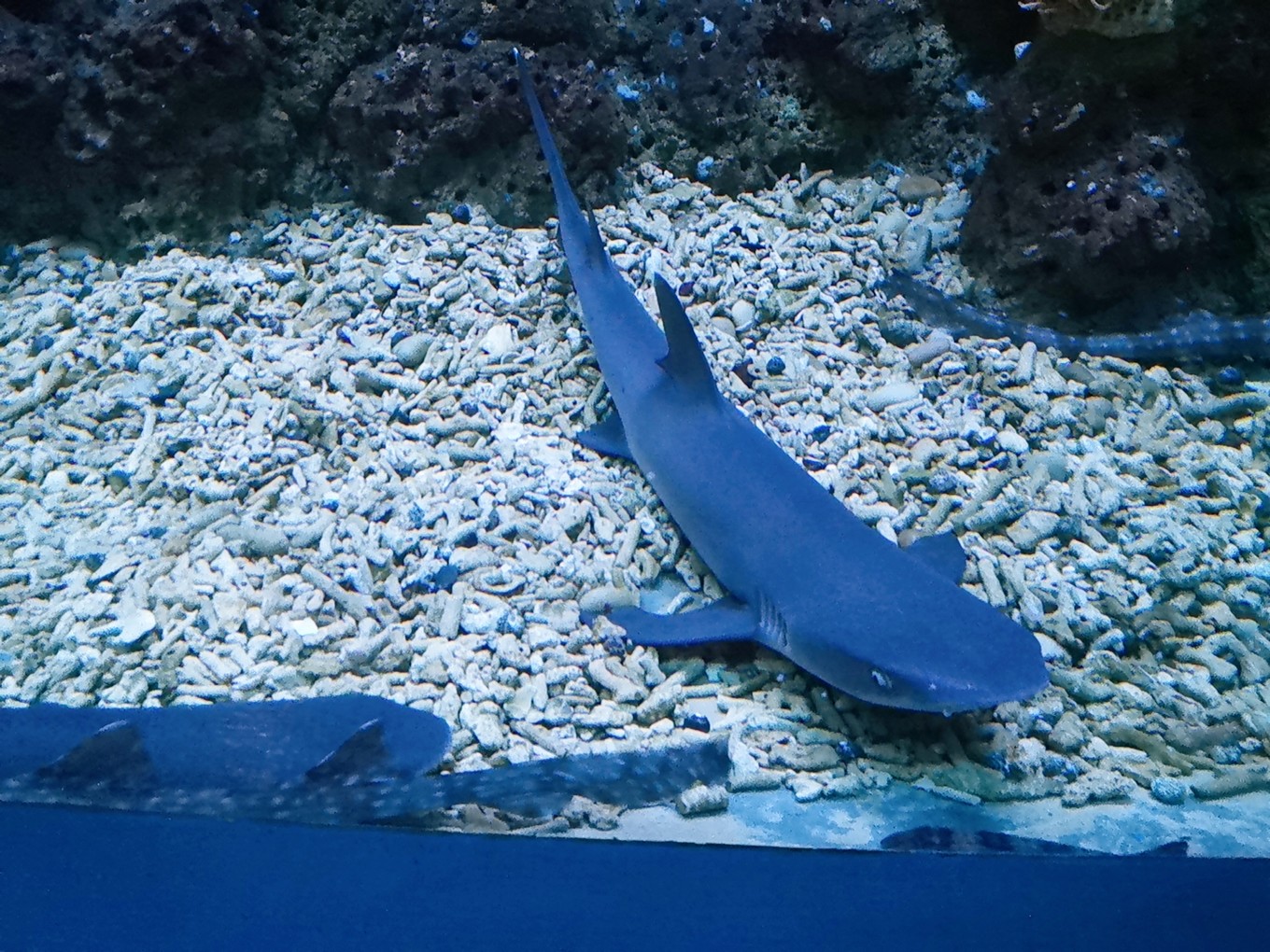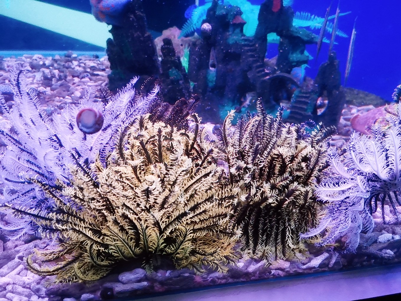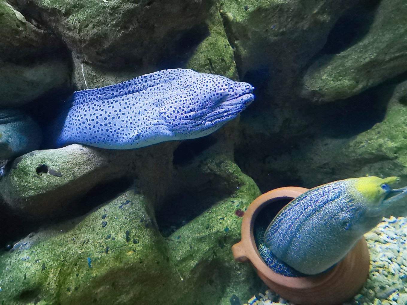 各種魚兒在水里游弋,或龐大,或嬌小,或兇猛,或憨態(tài)可掬。