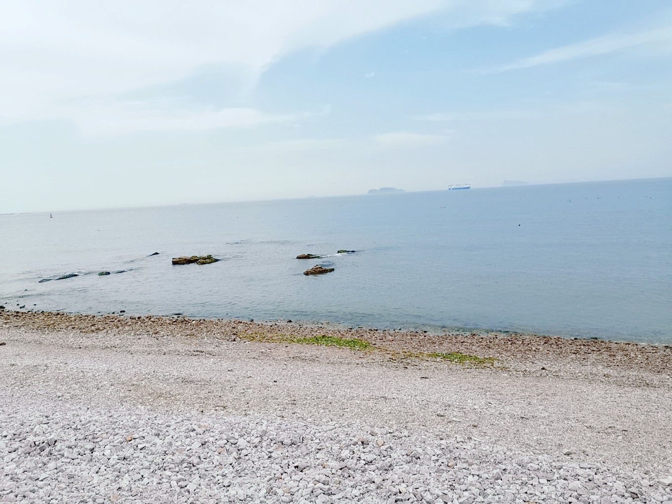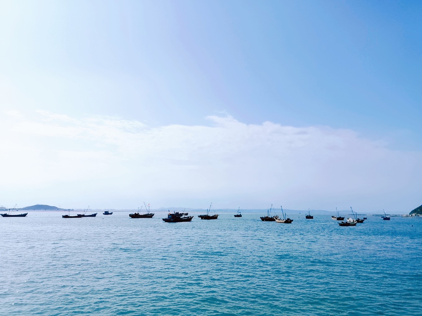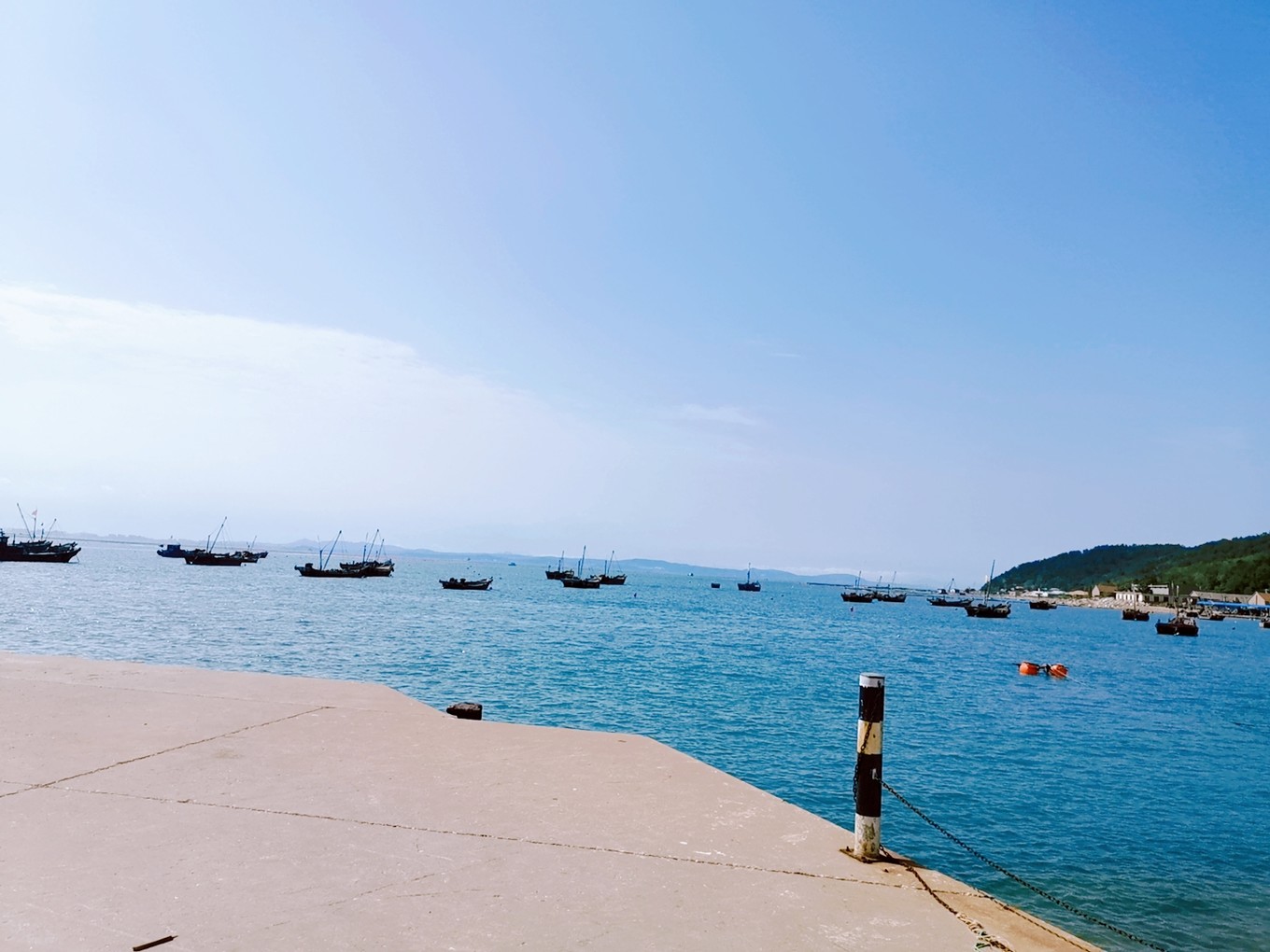 這里是著名的黃海和渤海的交匯處,天雖熱,風(fēng)很輕。