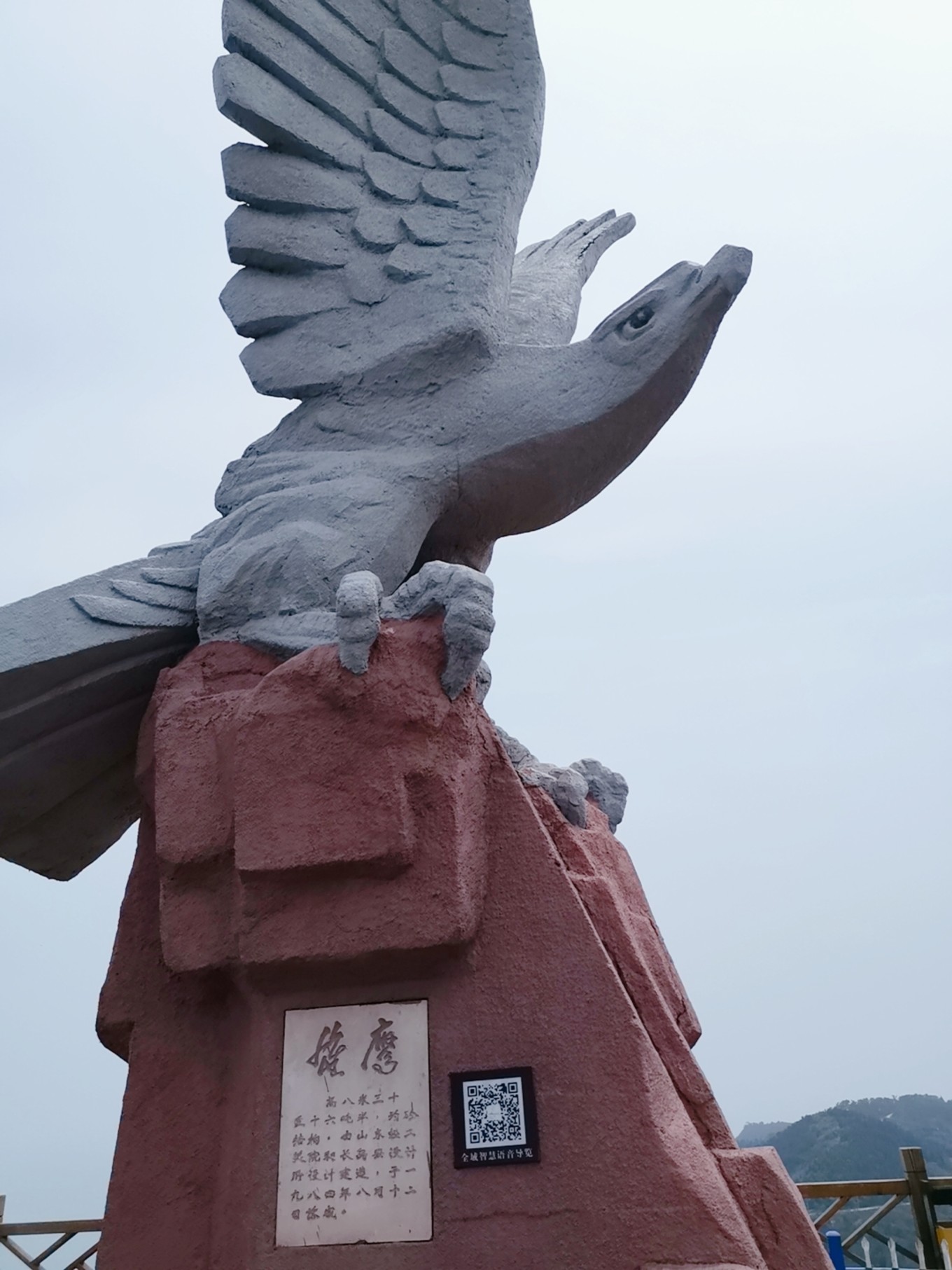 爬到山頂,展現(xiàn)在眼前的是一個壯碩的雄鷹展翅雕塑,看看山下的風(fēng)景,風(fēng)都是熱的。