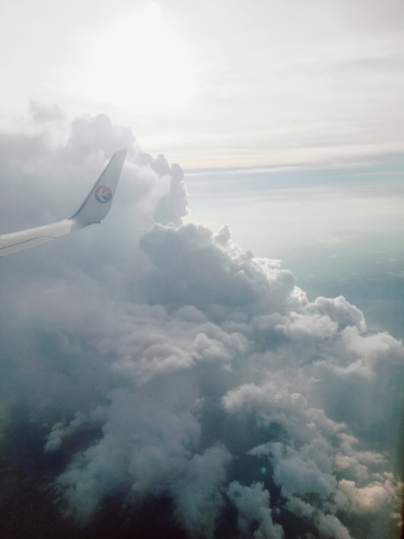 飛機(jī)在云層穿梭著,時而高掛云端,純白無瑕,時而烏云團(tuán)團(tuán),晦暗不明。