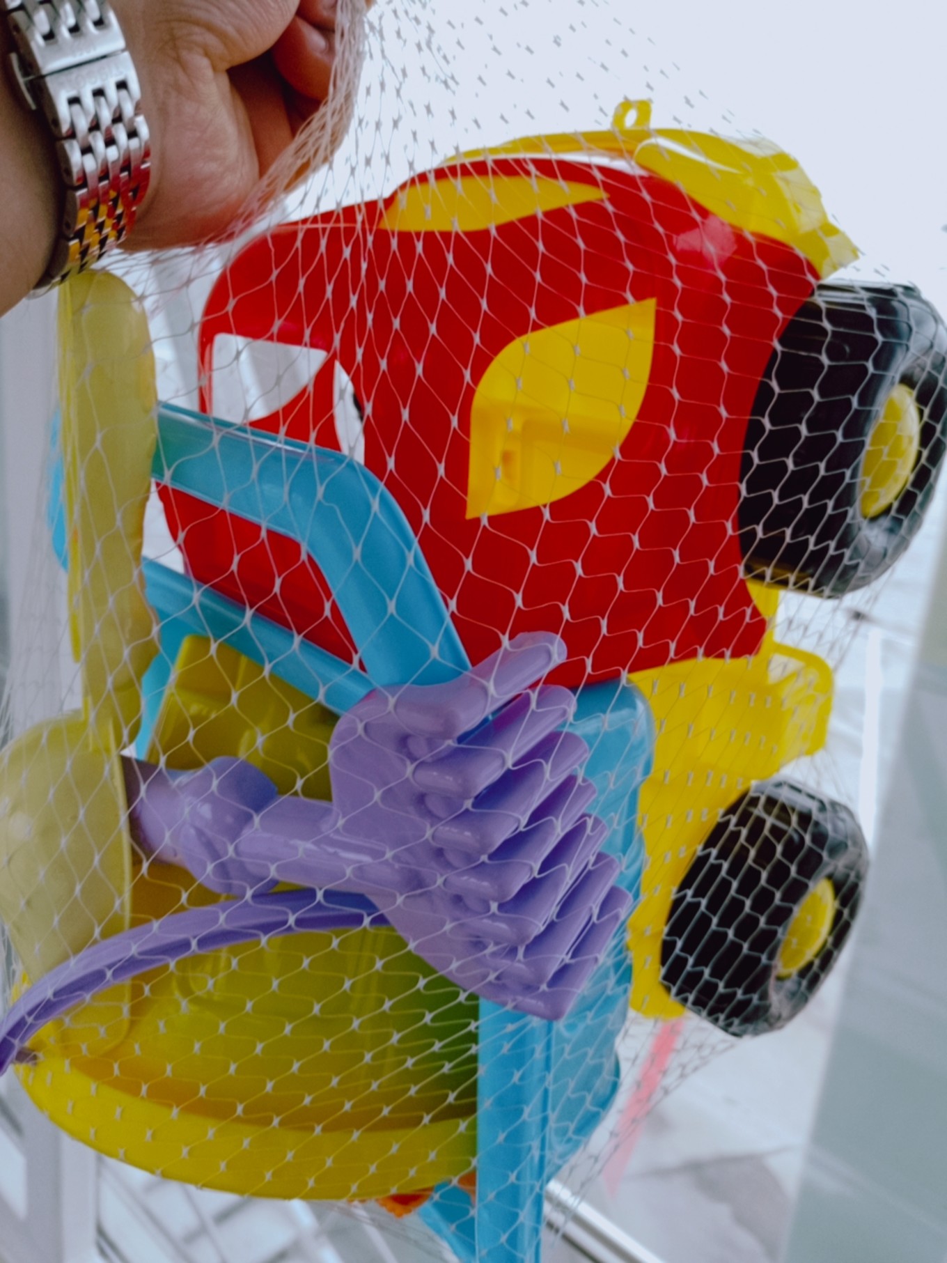 到附近的超市補(bǔ)給了一些食物和水,給娃買了玩沙的沖鋒車,在小商品市場買了游泳圈,天色便暗了下來。