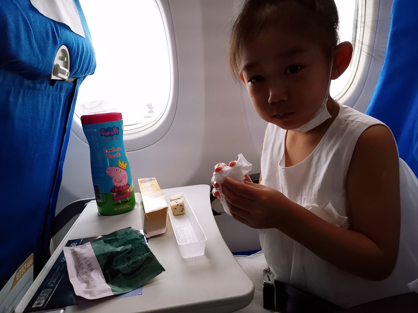 孩子第一次坐飛機(jī),飛機(jī)在助飛的時候就已經(jīng)眼睛在打架了,早上起得太早,可飛上藍(lán)天的一剎那,她又回過神來,稀奇地望著窗外,失重的那一刻,宛若騰云駕霧,人生的獨(dú)特感受,童年的記憶銘刻。