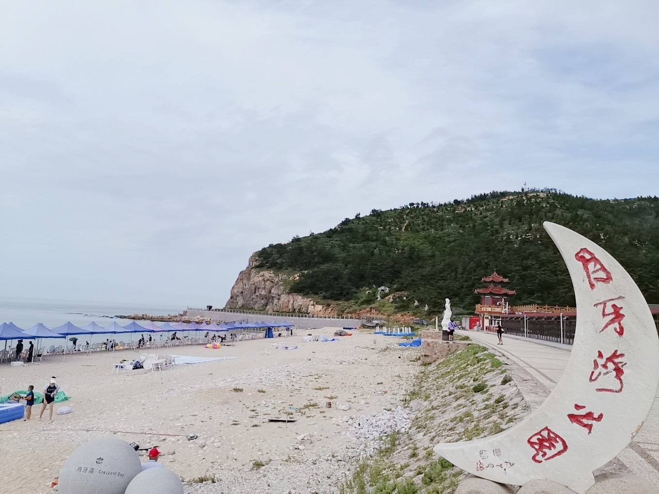 月牙灣沙灘,游人如織,孩子們嬉戲的天堂,感受了下水的溫度淺嘗輒止。
