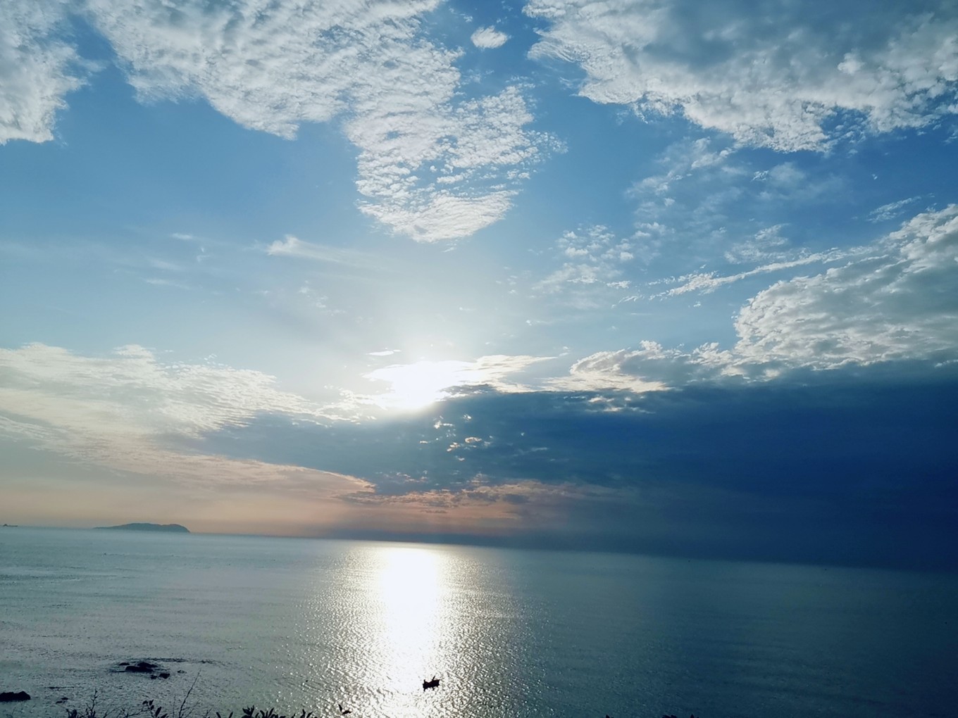 海上的天氣瞬息萬變,一會兒光芒萬丈,一會兒烏云密布。