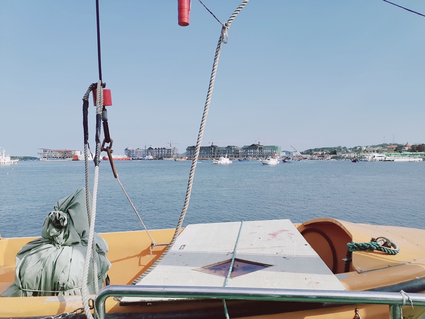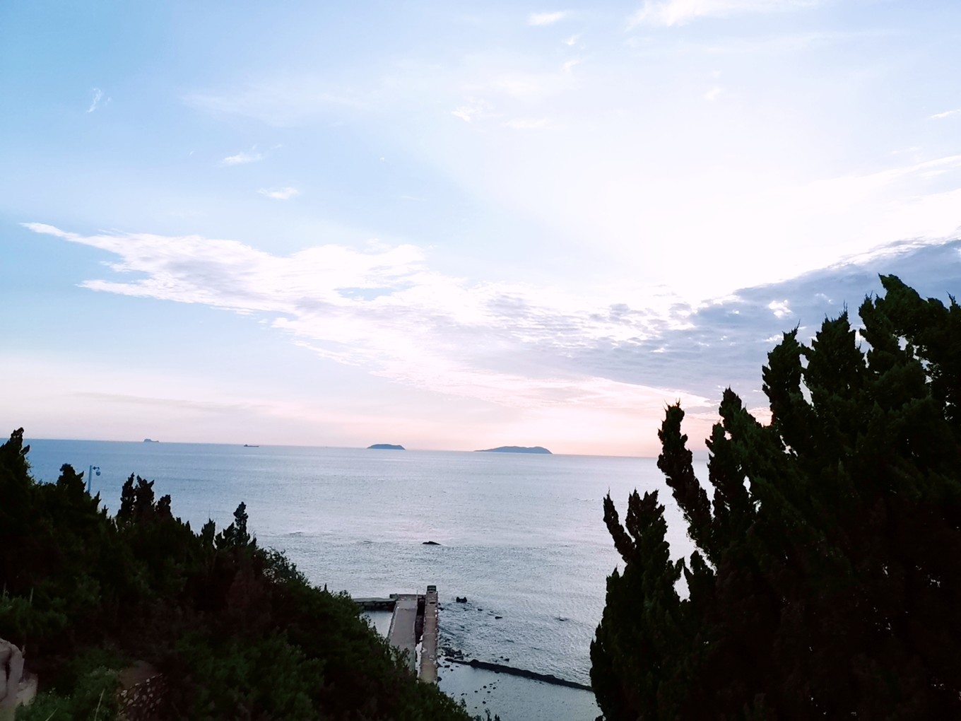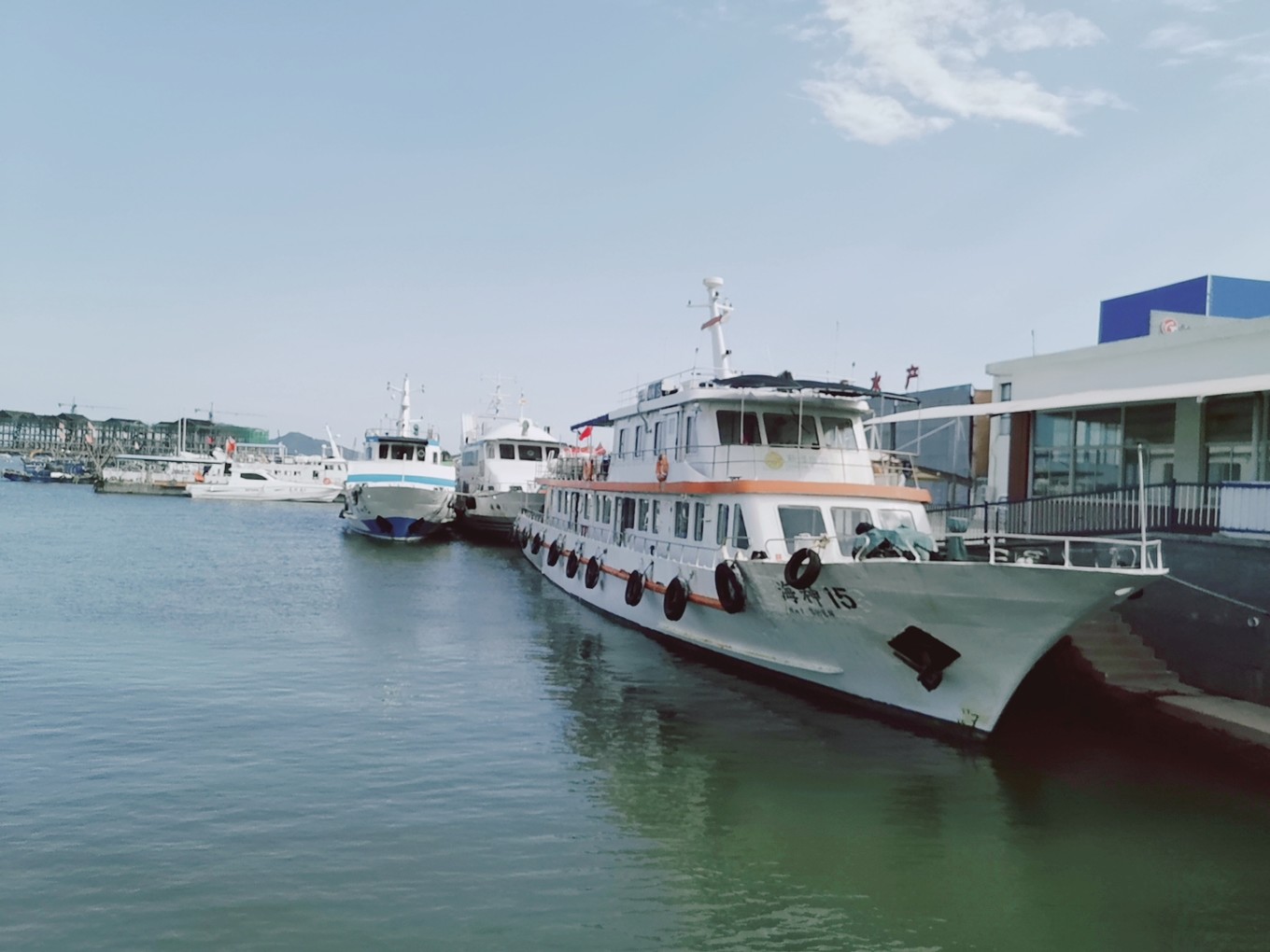 心情稍微平復(fù)了點(diǎn),看著一路的藍(lán)天白云,心情愈發(fā)舒爽,快4點(diǎn)的樣子到了蓬萊港口。