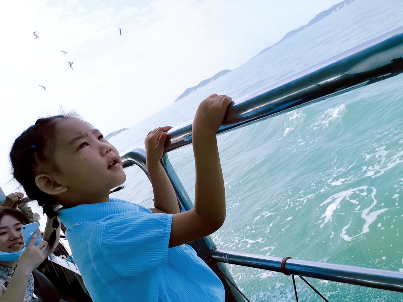3個半小時的航程,最后海輪愈發(fā)顛簸,娃兒還暈吐了。