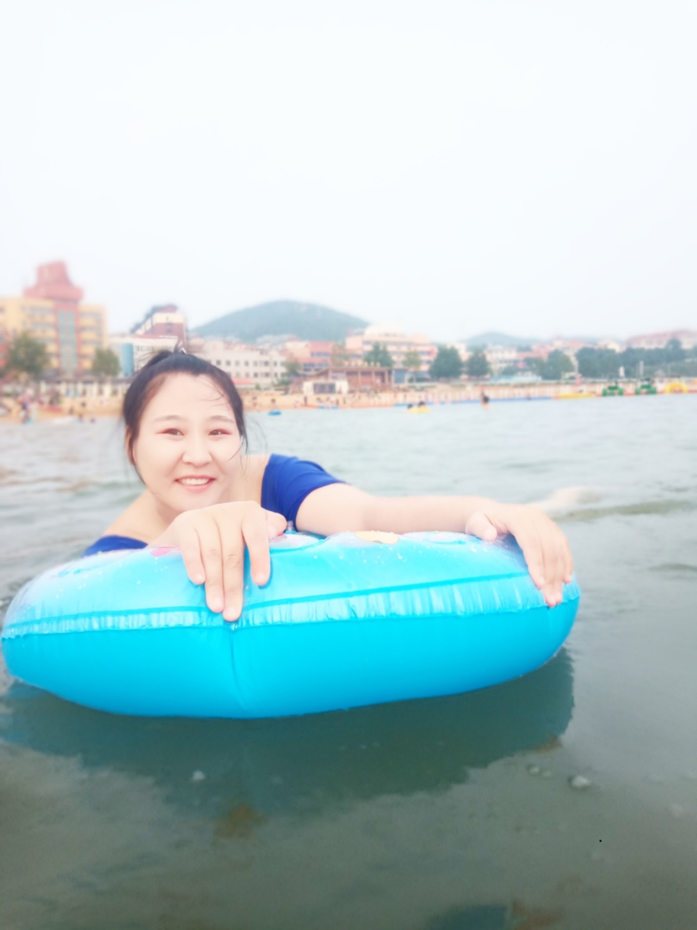 但是夢(mèng)想和現(xiàn)實(shí)總是存在差距的,趴在泳圈上的我,最后成了子君和雪瑩的水球,子君把我推過去,雪瑩把我推回來,她們倆玩的不亦樂乎。