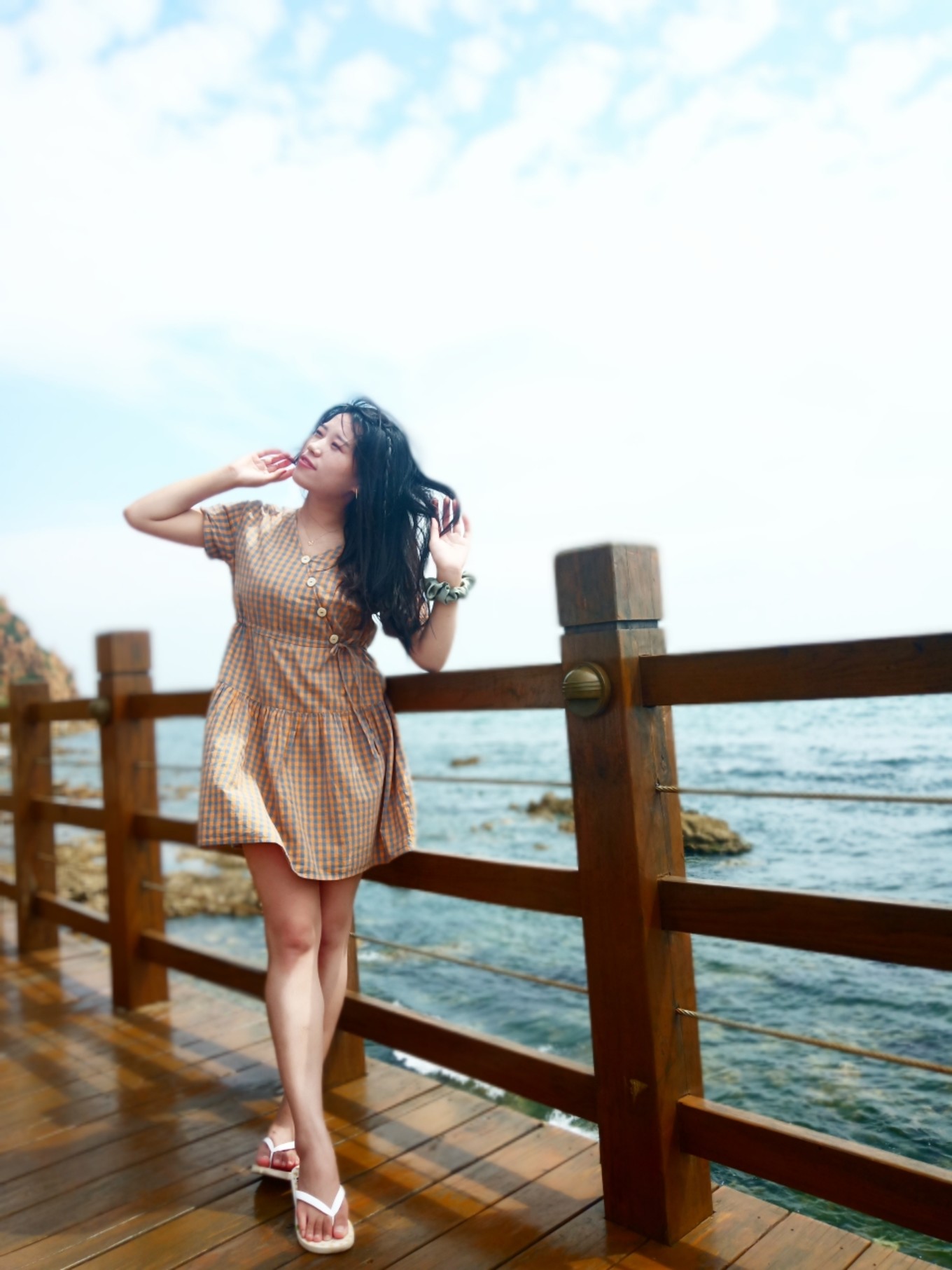進(jìn)入臨海,沿著長長的棧道向前走去,一側(cè)是湛藍(lán)的海水,一側(cè)是連綿的山林,空氣中帶著清新濕潤的味道。海風(fēng)輕柔吹過來,揚(yáng)起頭發(fā)和裙擺,靠在一側(cè)的欄桿上,仰頭,側(cè)身,隨意一拍,都會(huì)是一張好看的照片。
