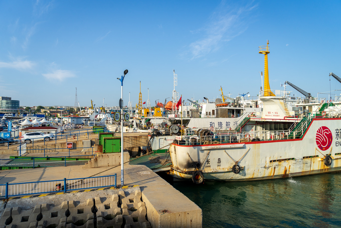 從煙臺蓬萊的蓬長客港上船,清晨7點多的陽光照在海上,發(fā)出耀眼的光芒。說來慚愧,已經(jīng)好久沒有看到過7點鐘的日光,每每失眠熬夜,等晨起已經(jīng)是8點后,才知道原來夏日的太陽,一早就如此燦爛明亮。