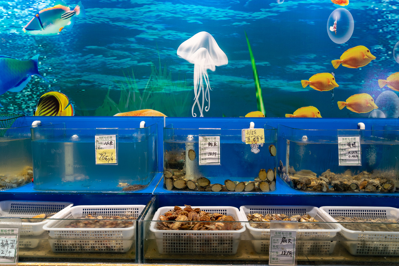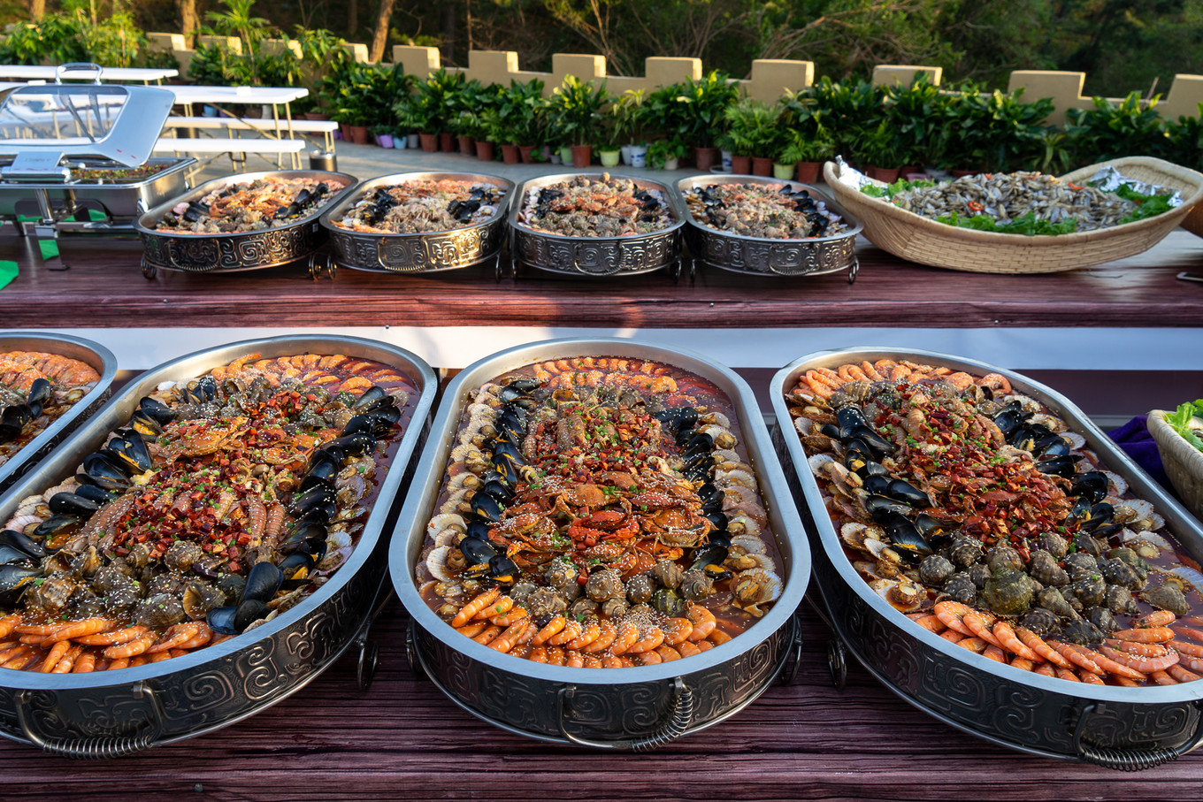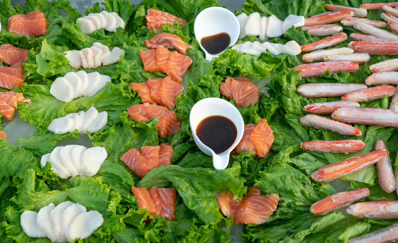 海參、鮑魚跟大蝦,每位食客限量供應,其他的所有菜品全都自主選取,一直吃到撐為止。