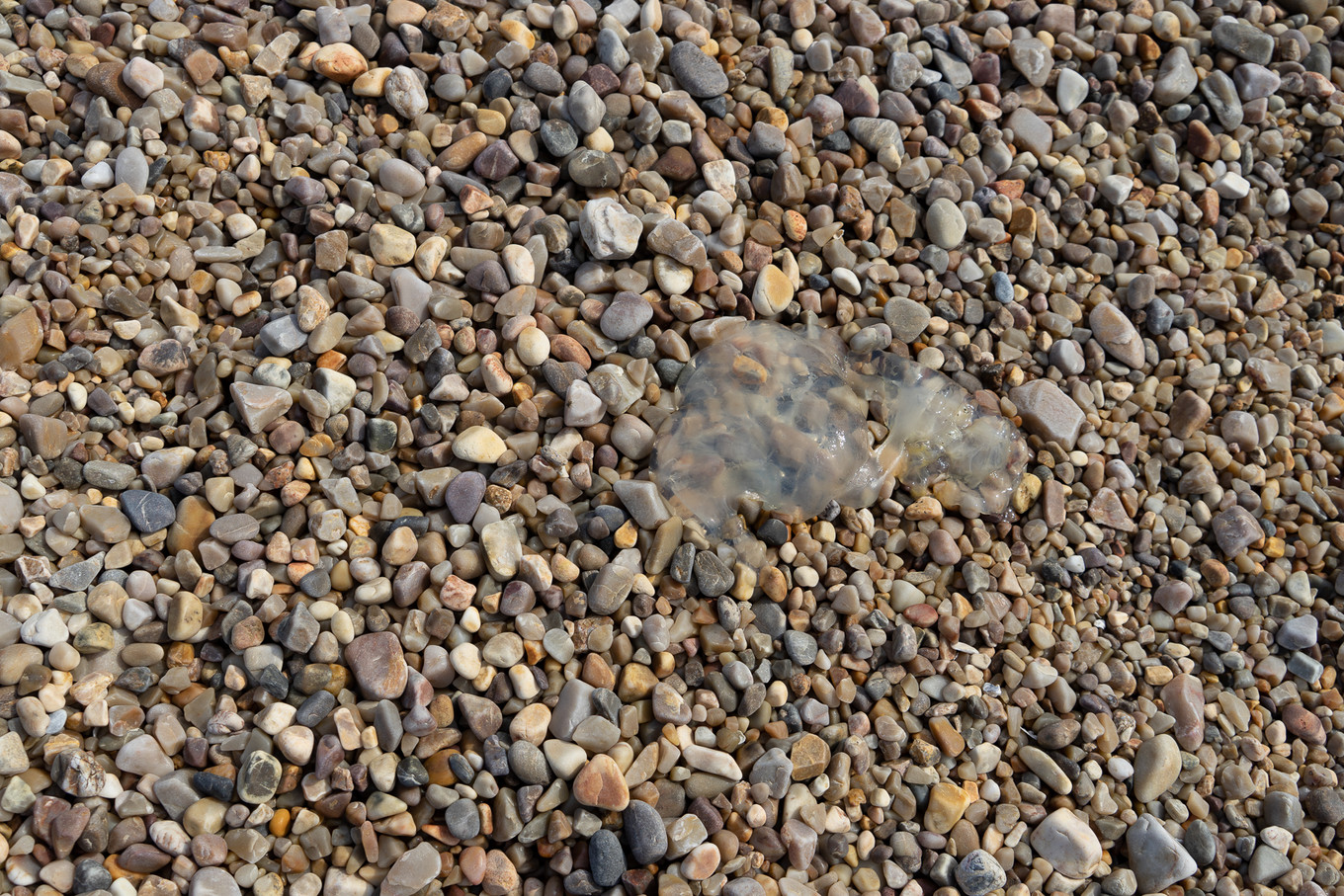 漫步在海灘邊,意外發(fā)現(xiàn)了一只海蜇,軟軟的趴在砂石上。有點可愛,也有點可憐。