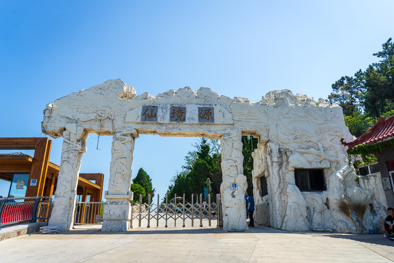 這是近些年才修建好,立在九丈崖的海底世界門前,內(nèi)有六大景:娘娘寺、龍王殿、聚仙洞、精靈窟、珍珠祠、圣水龍?zhí)丁?